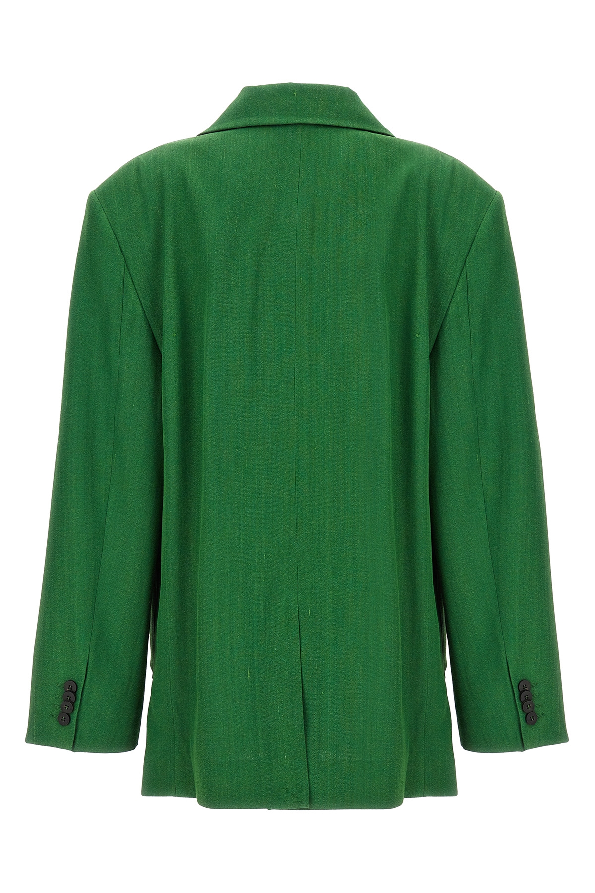 Single-breasted 'La veste Titolo' linen and wool blazer with button closure, pockets, padded shoulders, long sleeves, back split.