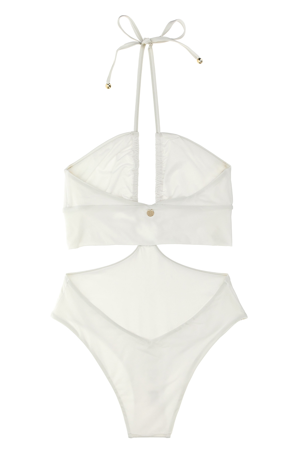 'Cleopatra' one-piece swimsuit in stretch fabric with cut-out details, lacing at the neck.