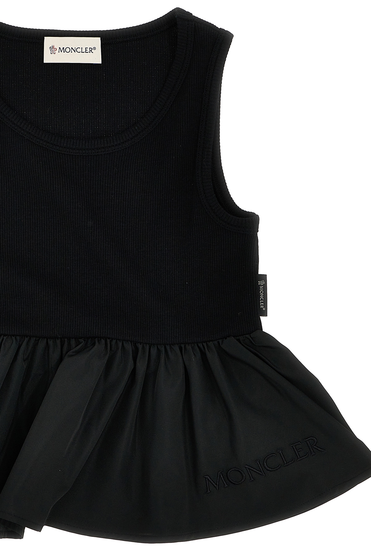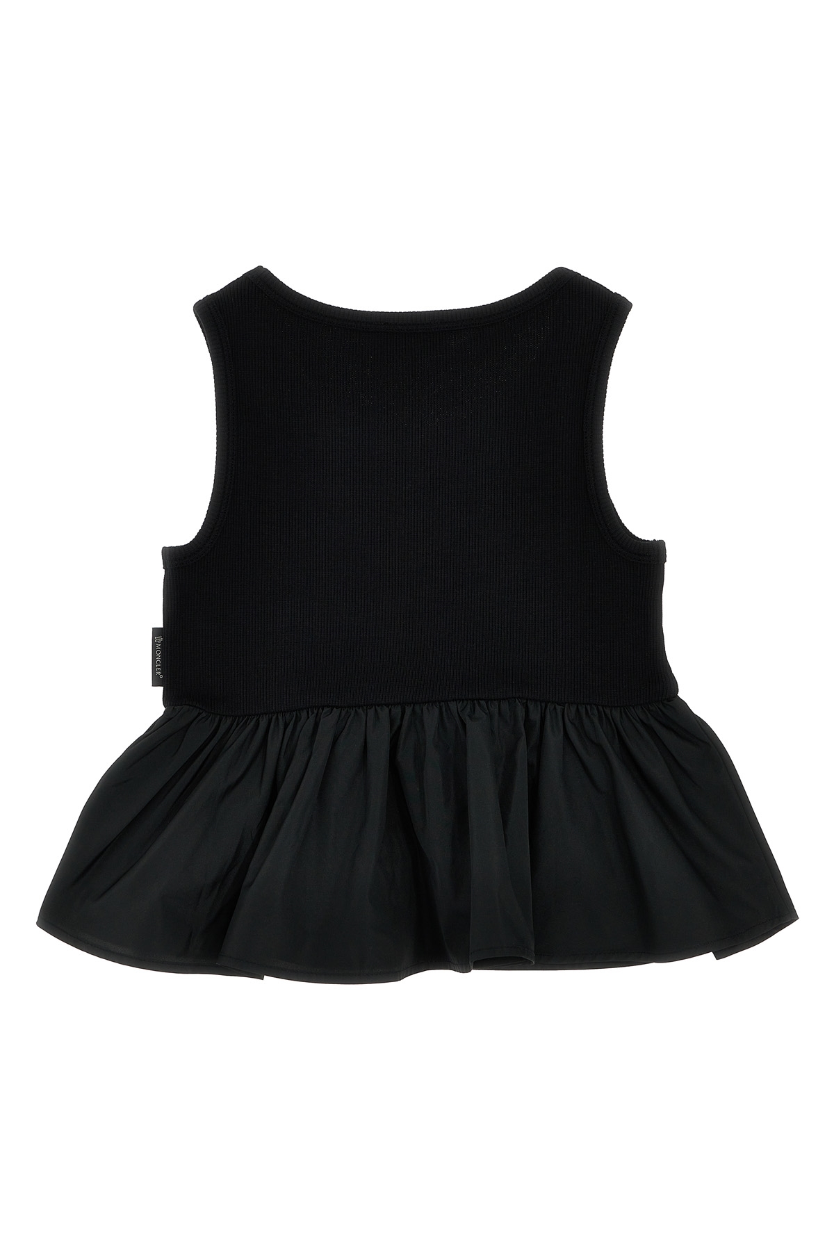 KIDS Cotton top with flounce detail, tonal logo embroidery, crew neck, sleeveless.