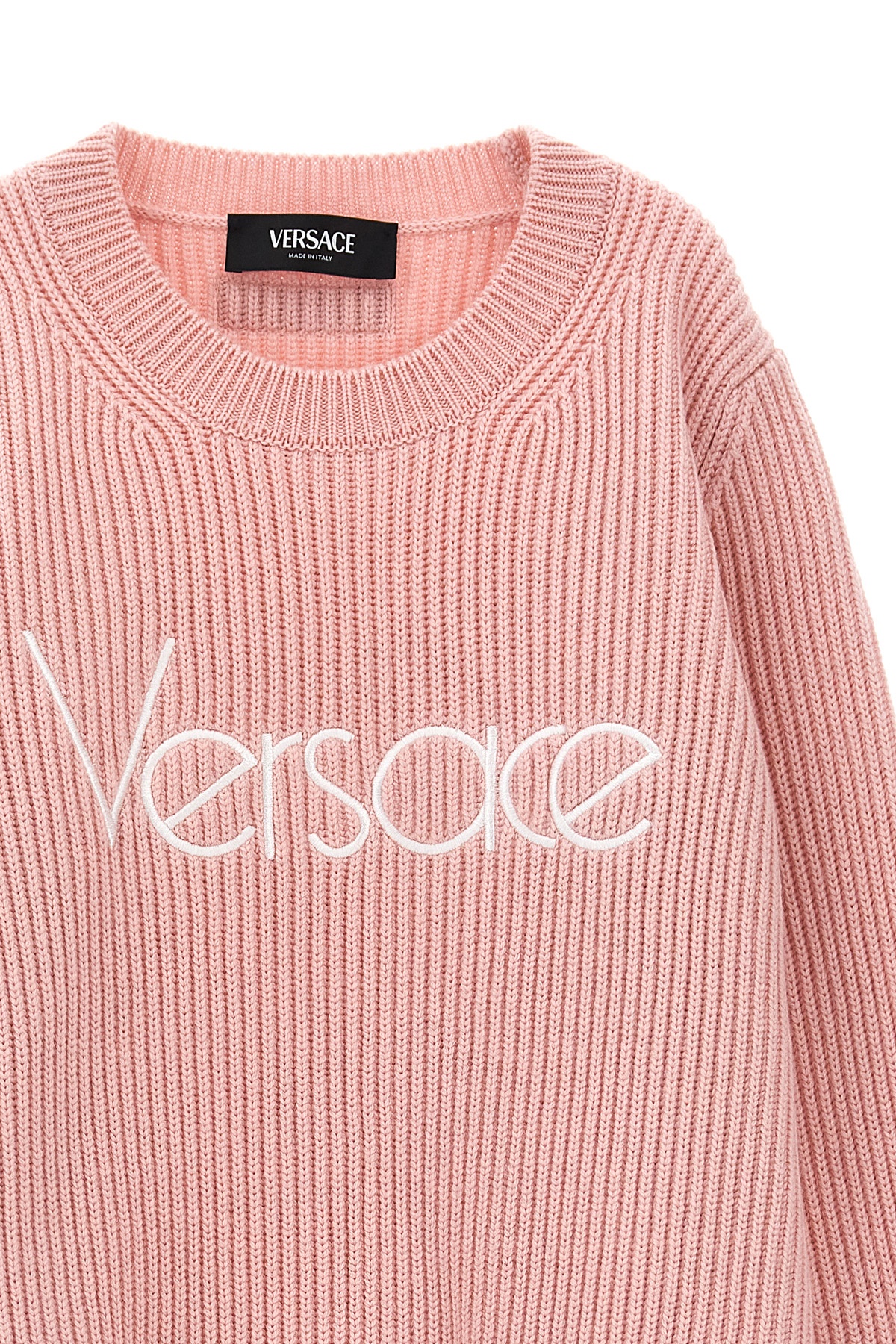 KIDS Wool sweater with front embroidered logo, crew neck, long sleeves.