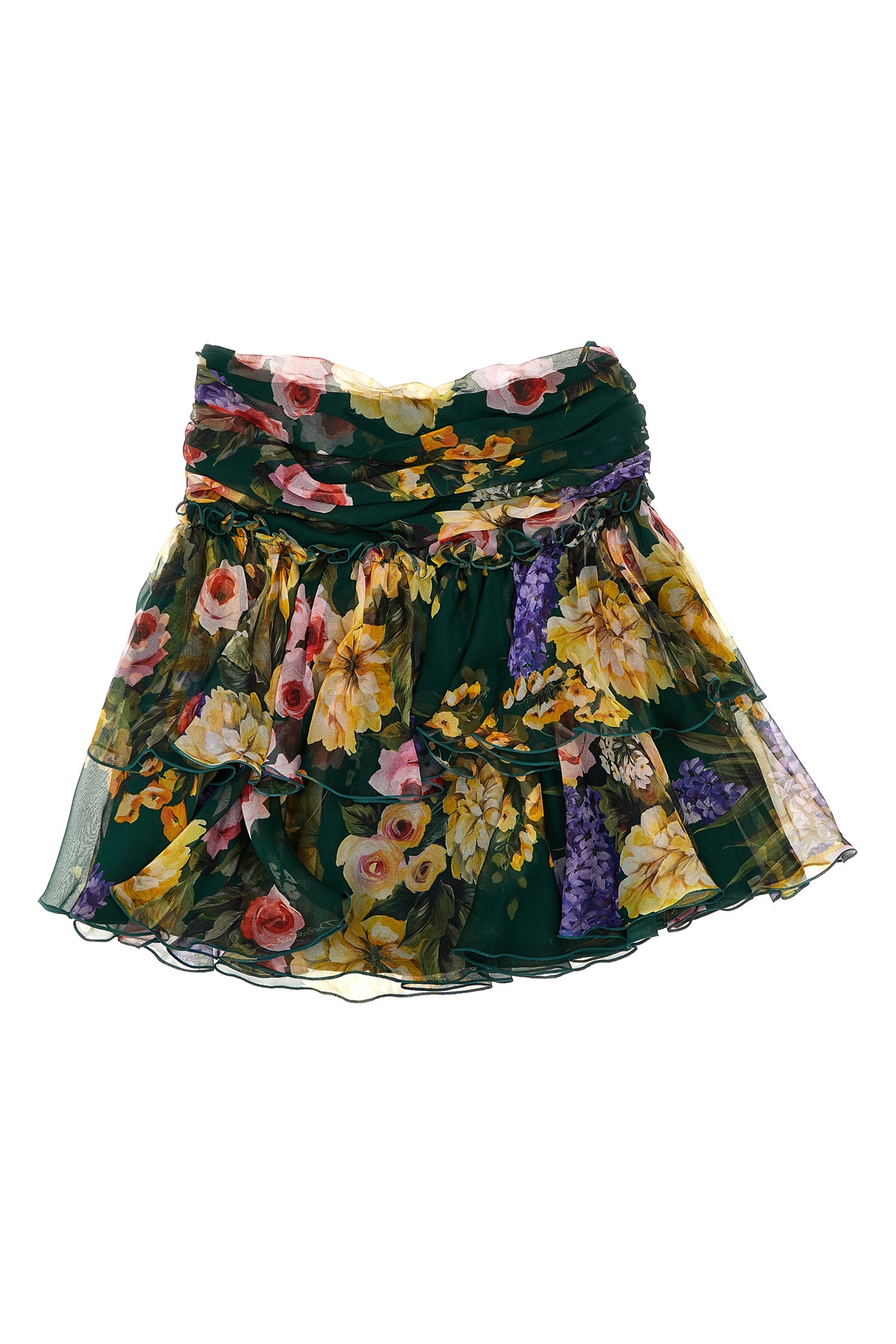 KIDS Chiffon skirt with floral print, elastic waistband, back zip closure.