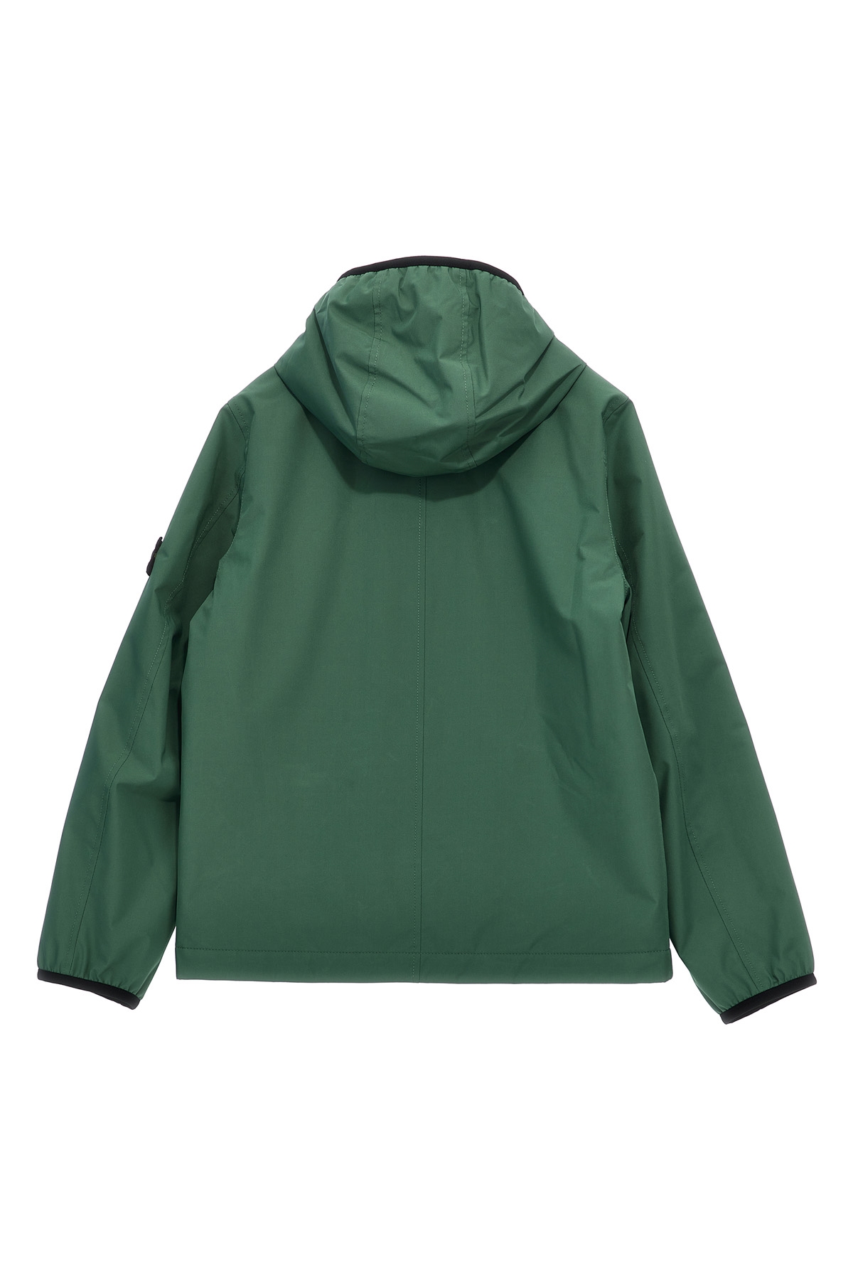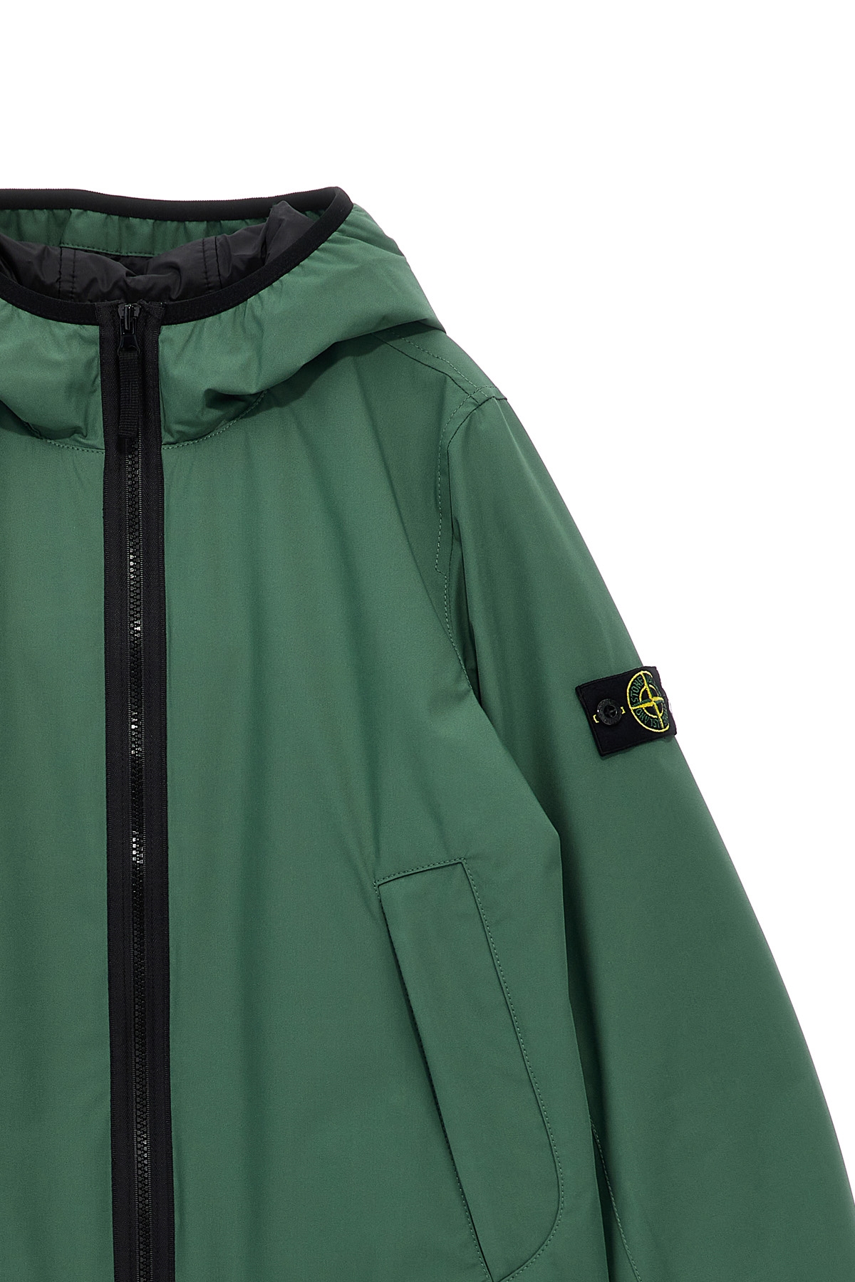 KIDS Lightly padded nylon hooded jacket, logo badge on the sleeve, zip closure, pockets, long sleeves.