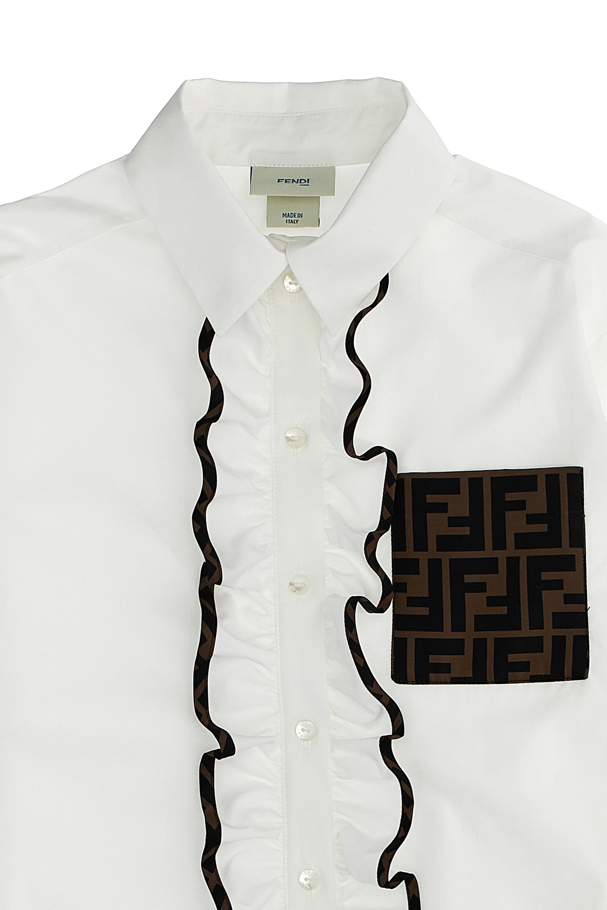 KIDS Cotton poplin shirt with ruffle button closure, 'FF' print details, front pocket, long cuffed sleeves.