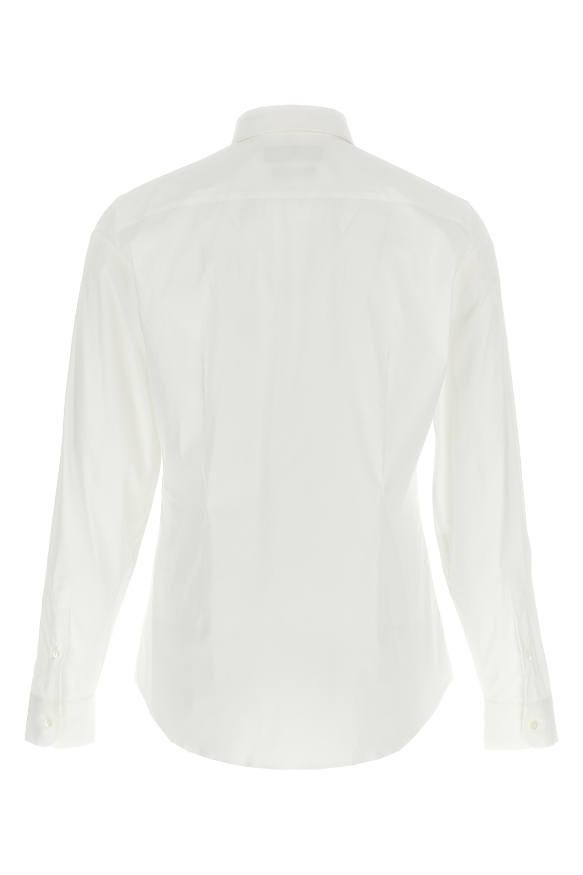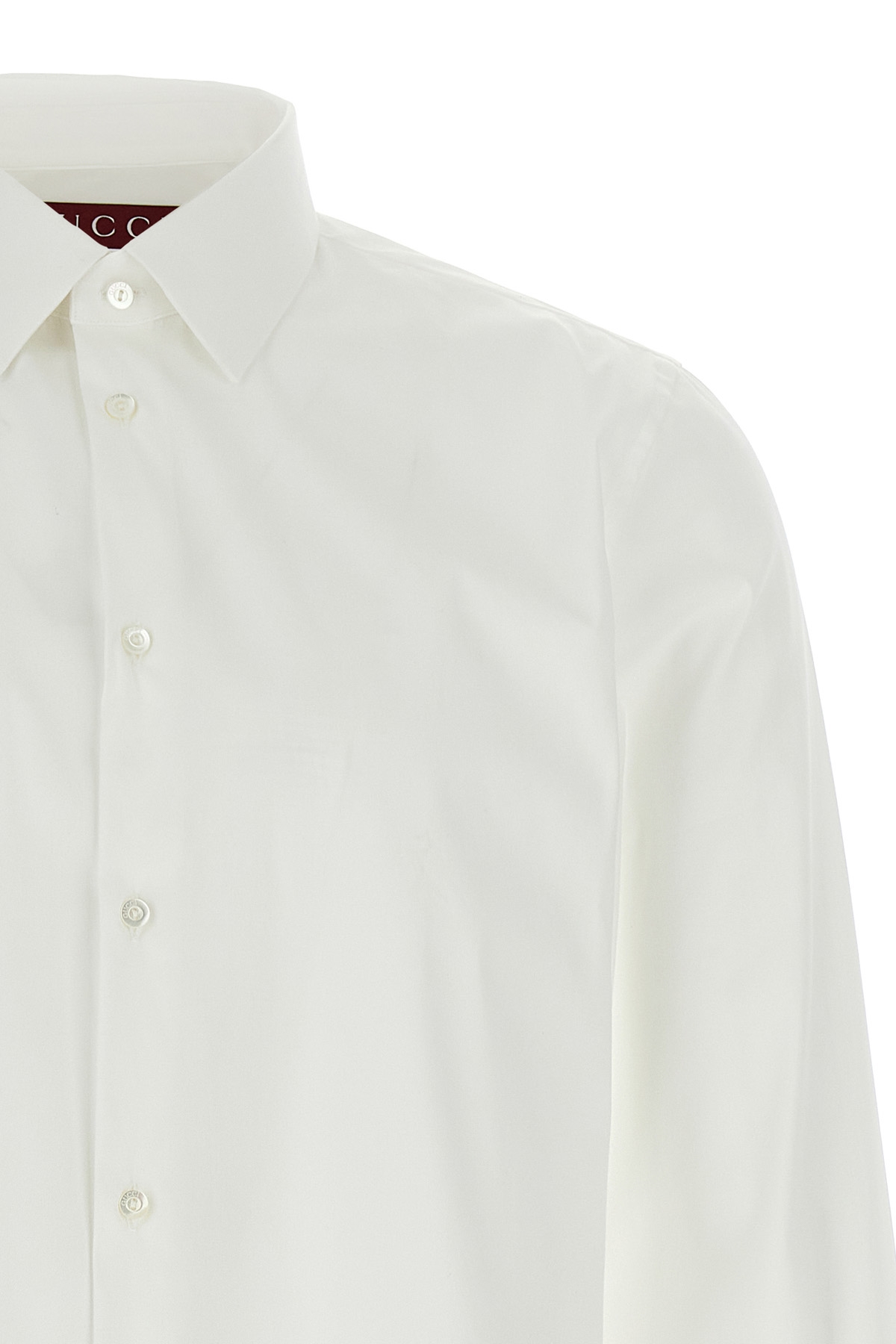Cotton blend poplin shirt with button closure, long cuffed sleeves.