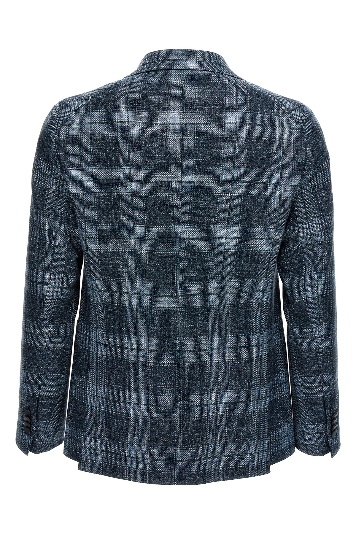 'Montecarlo' single-breasted blazer in wool and silk blend with maxi tartan pattern.
