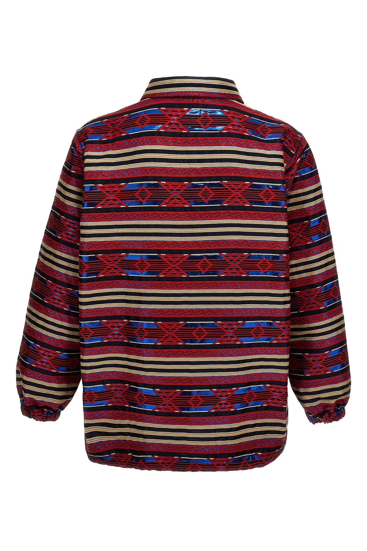 Cotton blend jacket with pattern, button closure, pockets, long sleeves with elastic cuffs, adjustable drawstring at the hem.