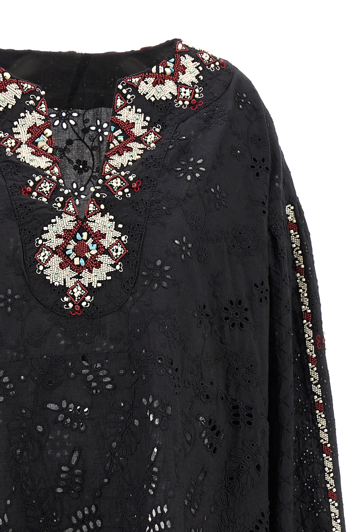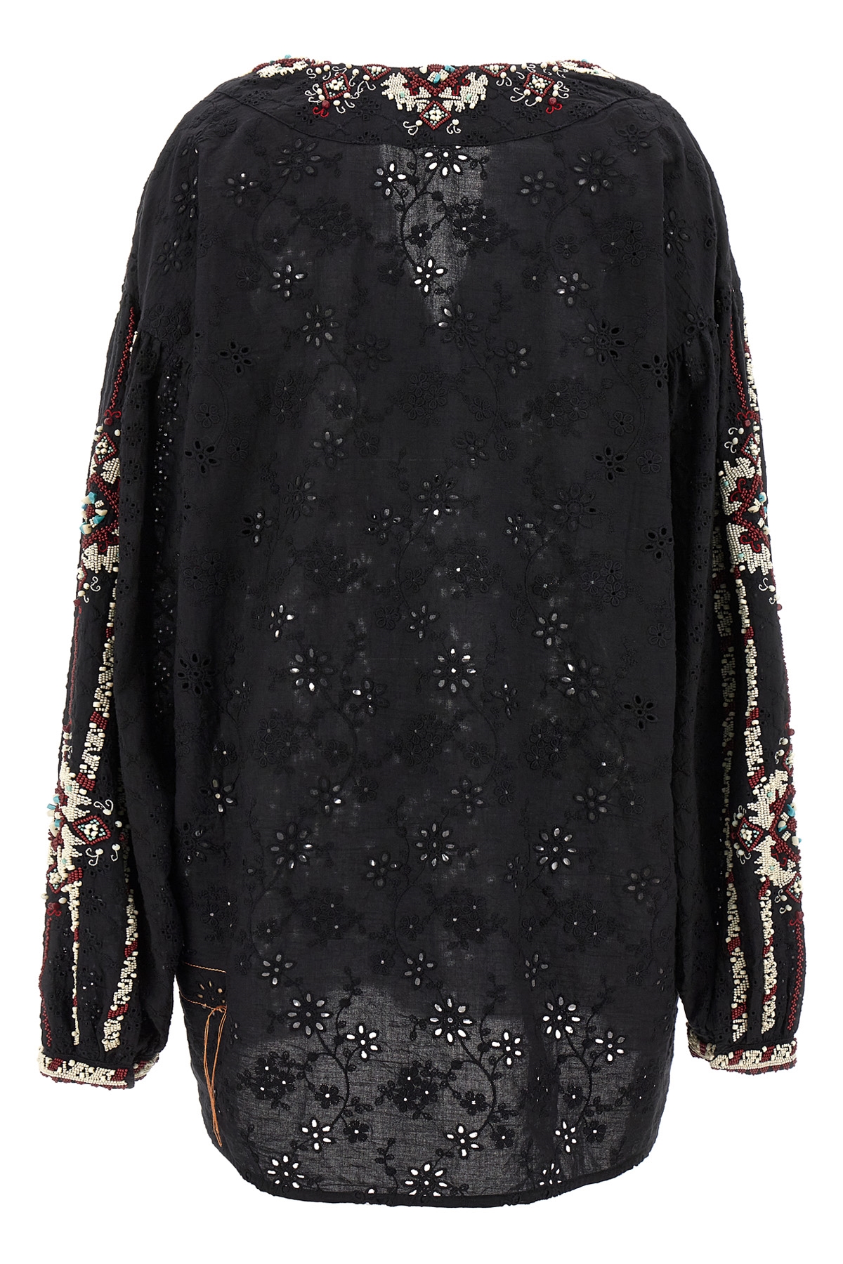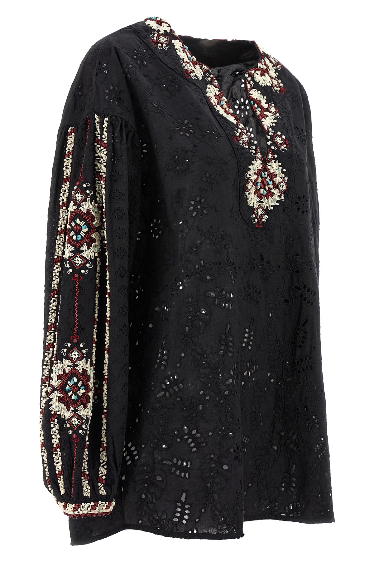 'Allegra' Sangallo cotton blouse with V-neck, beads application, long sleeves.