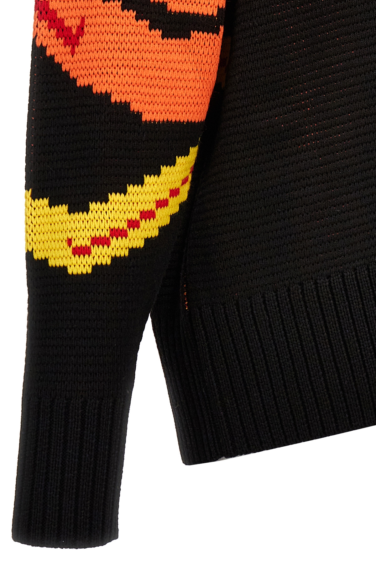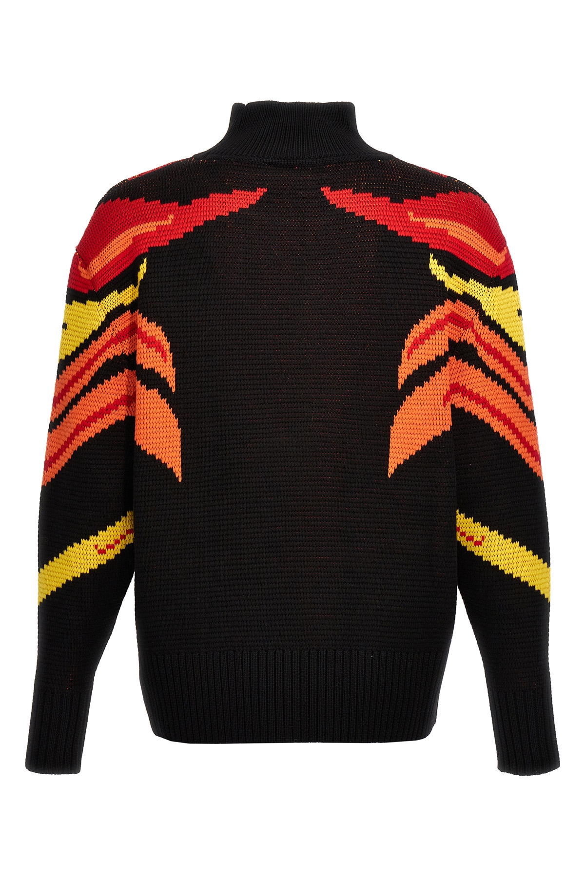 Jacquard wool sweater with high neck, long cuffed sleeves.