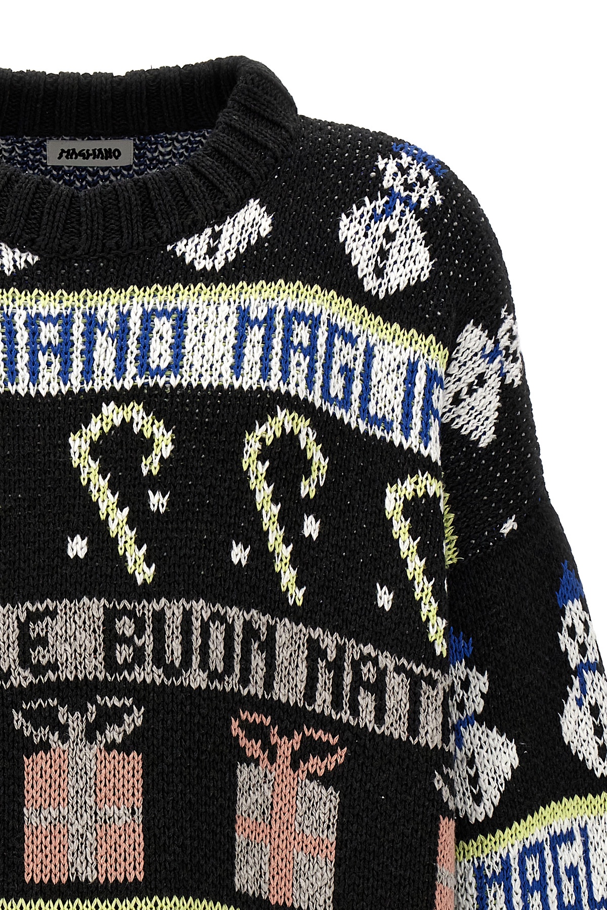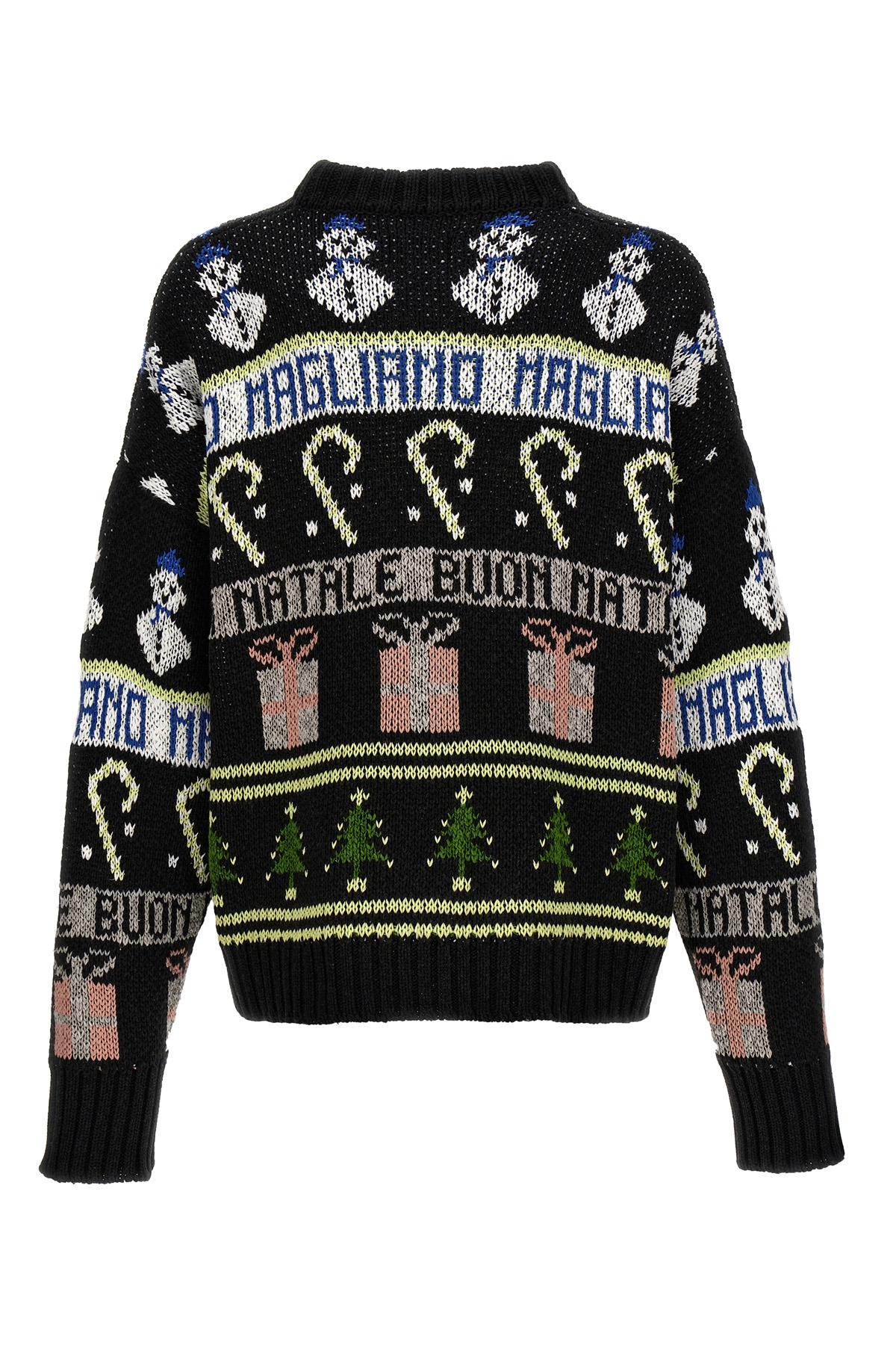 'Buone feste' cotton blend sweater with all-over contrast intarsia, crew neck.