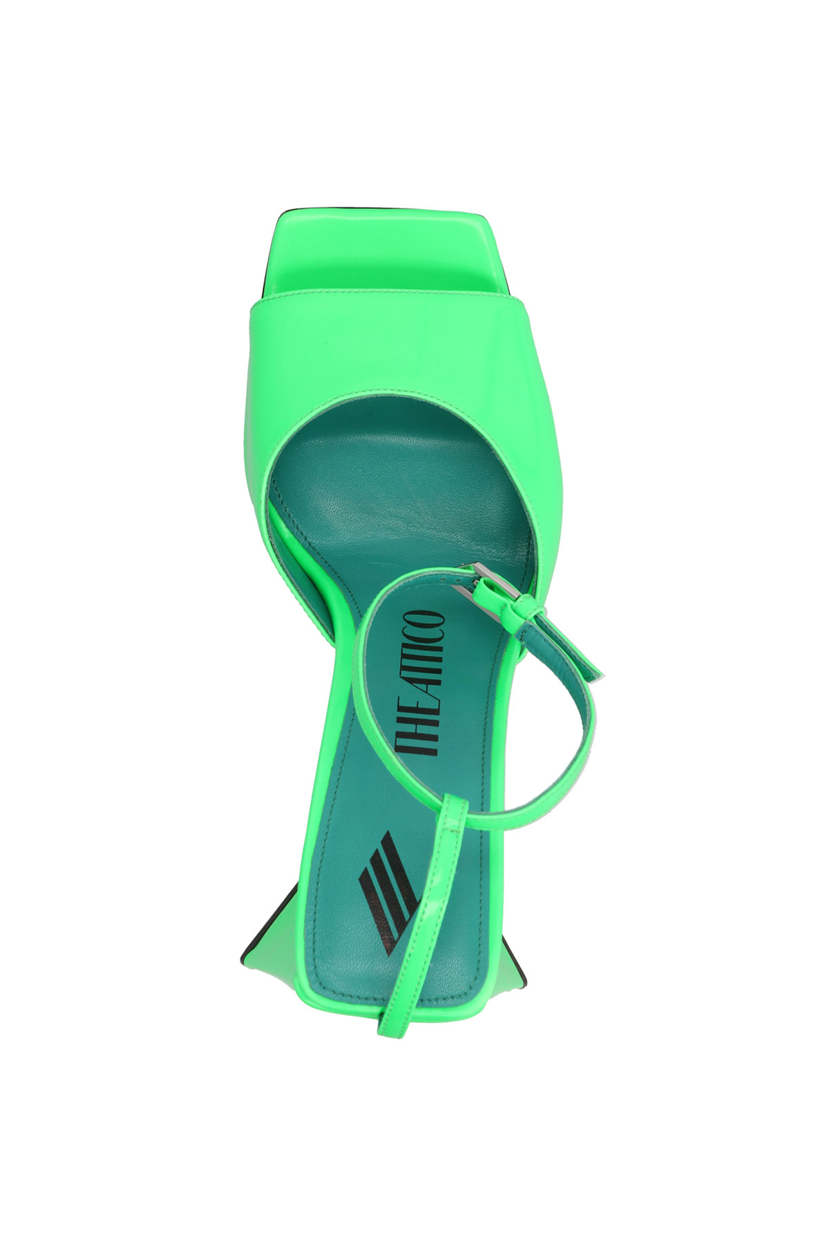 Piper' fluorescent leather sandals with pointed toe, ankle strap and sculpted heel.