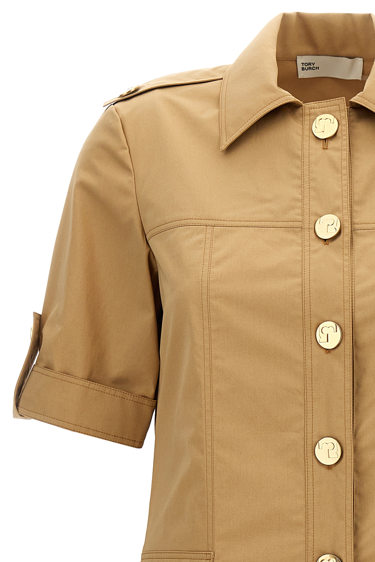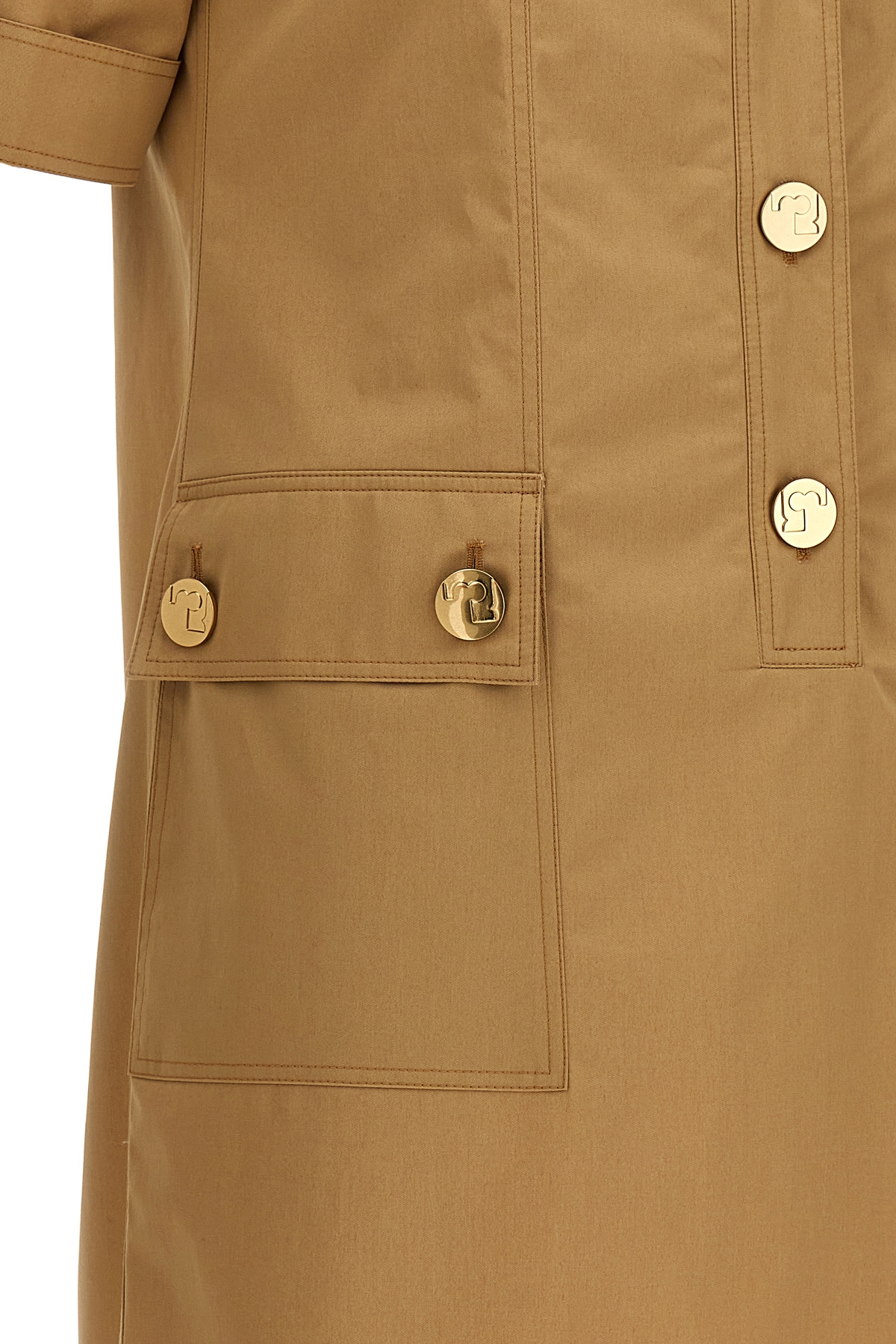 'Camp' cotton dress with pockets, button closure, short sleeves.