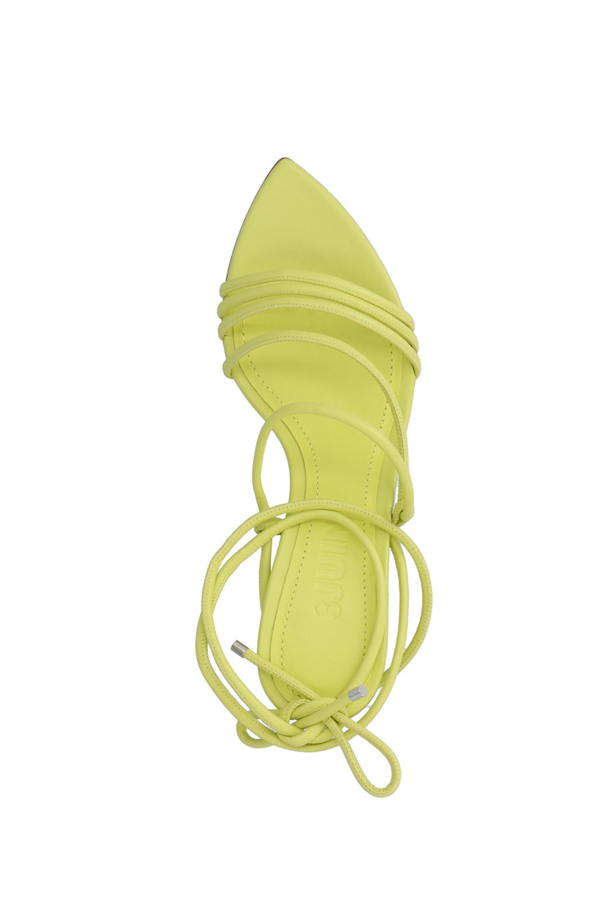 'Dafne' leather sandals with ankle ties, pointed toe, low heel.ow heel.