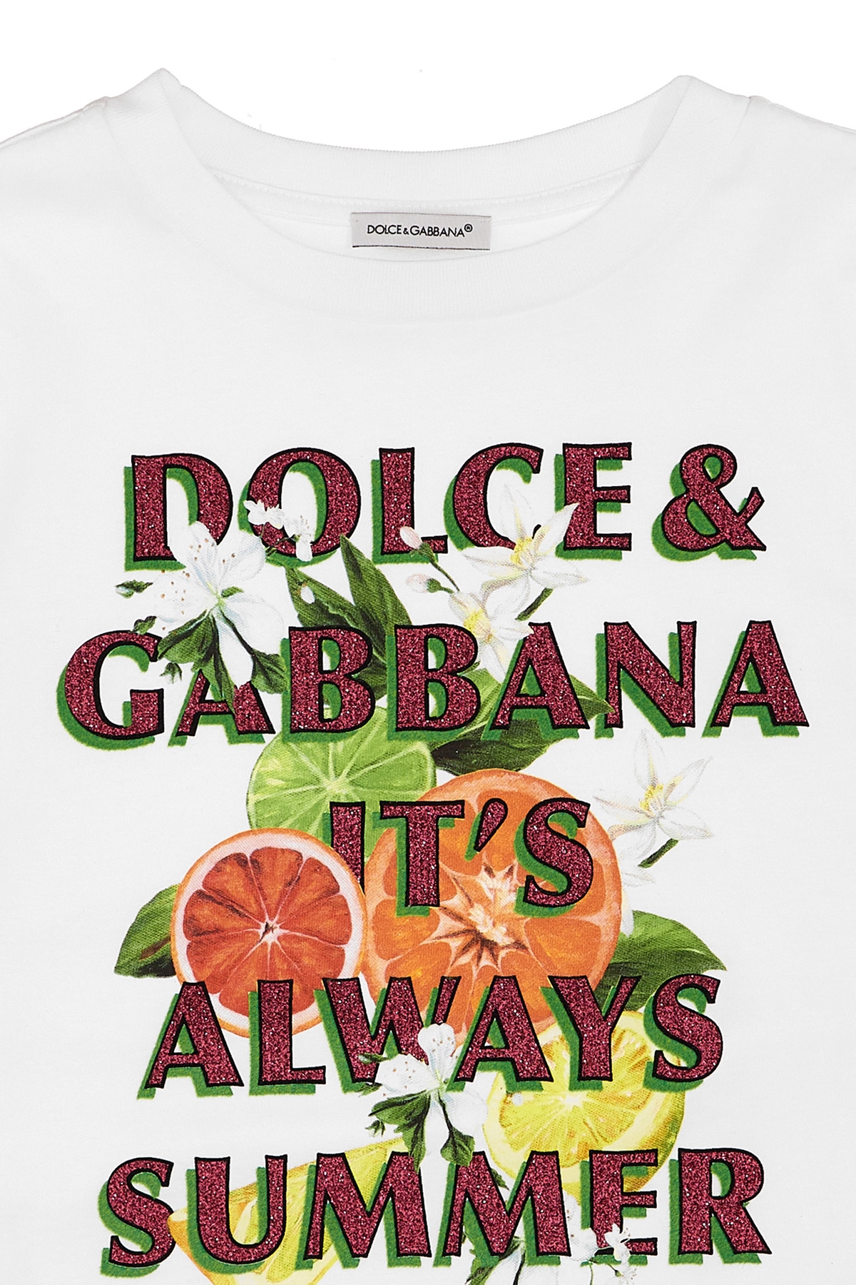 KIDS Cotton T-shirt with front print and glitter details, crew neck, short sleeves turned.