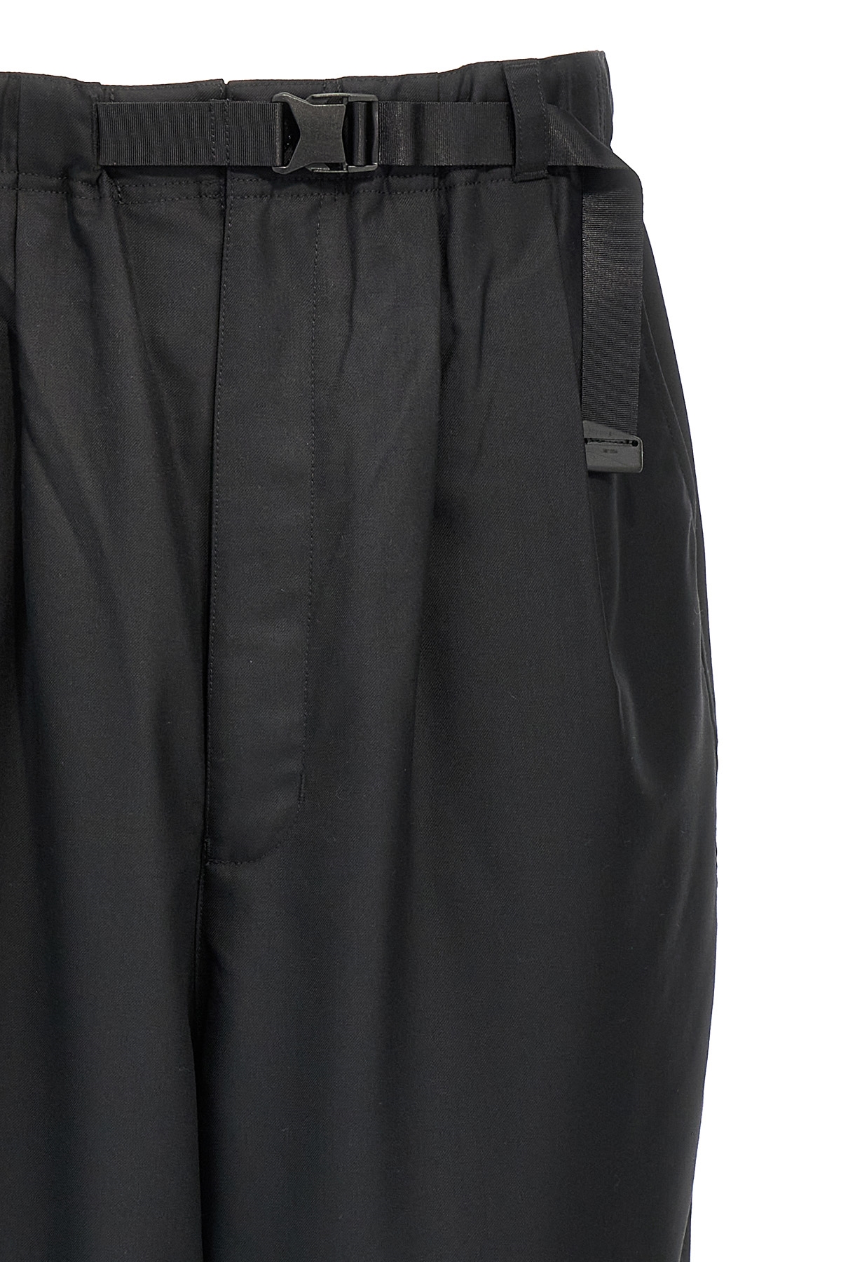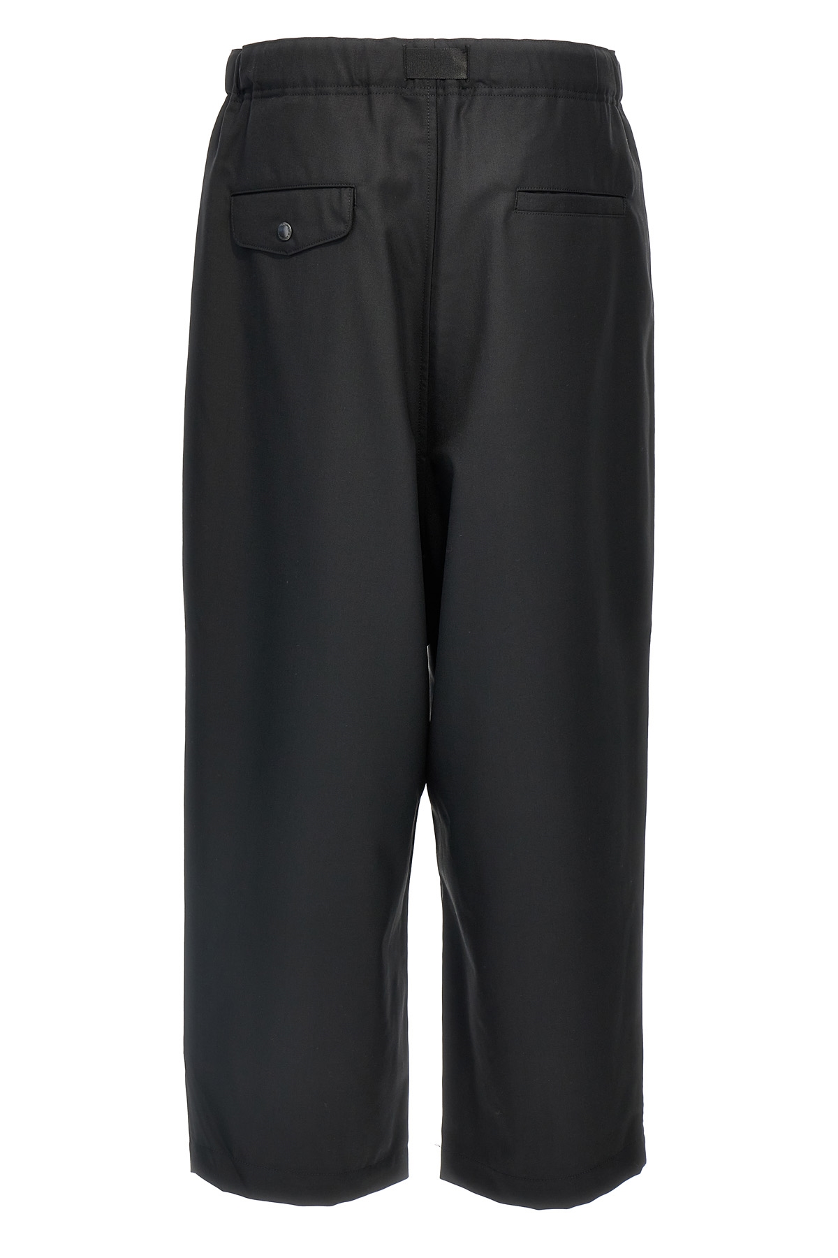 Wool trousers, zip and button closure, elastic and adjustable strap at the waist, pockets.