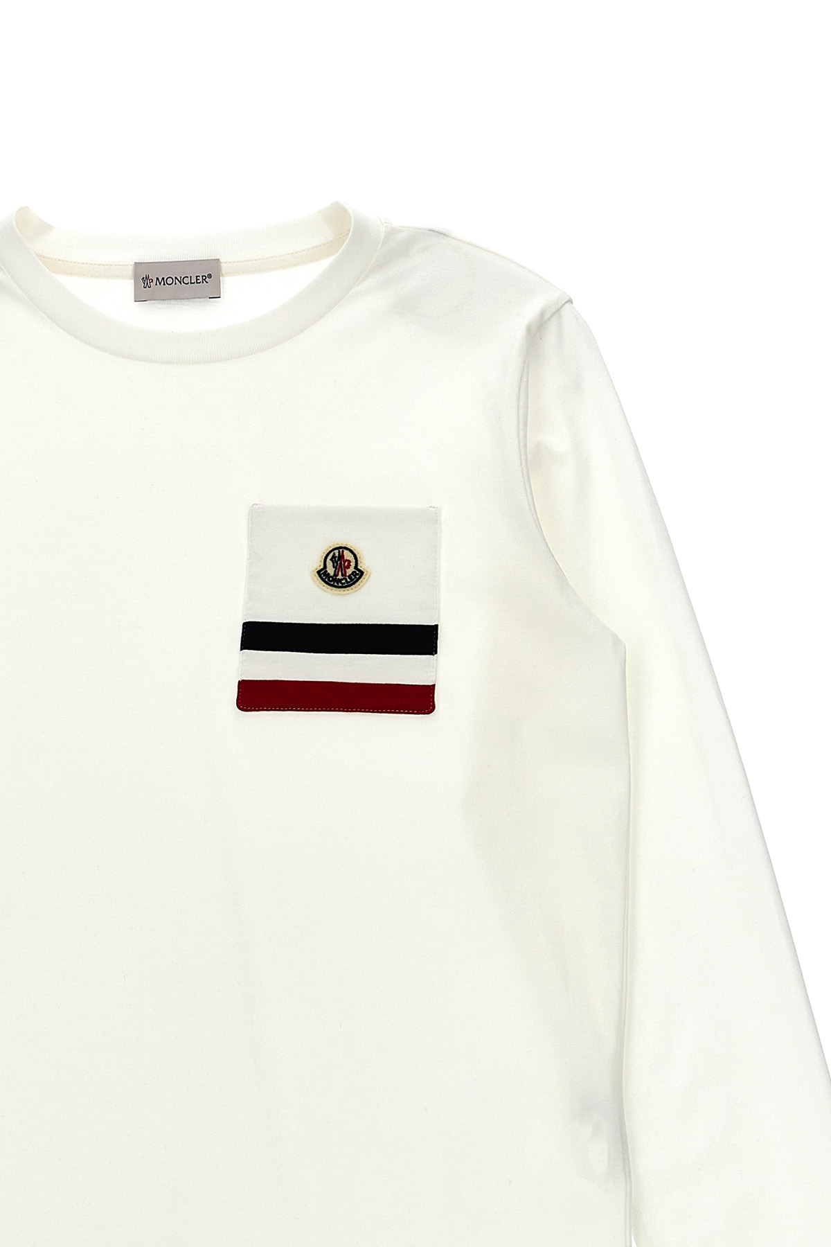 KIDS Cotton T-shirt with printed front pocket, crew neck, long sleeves.