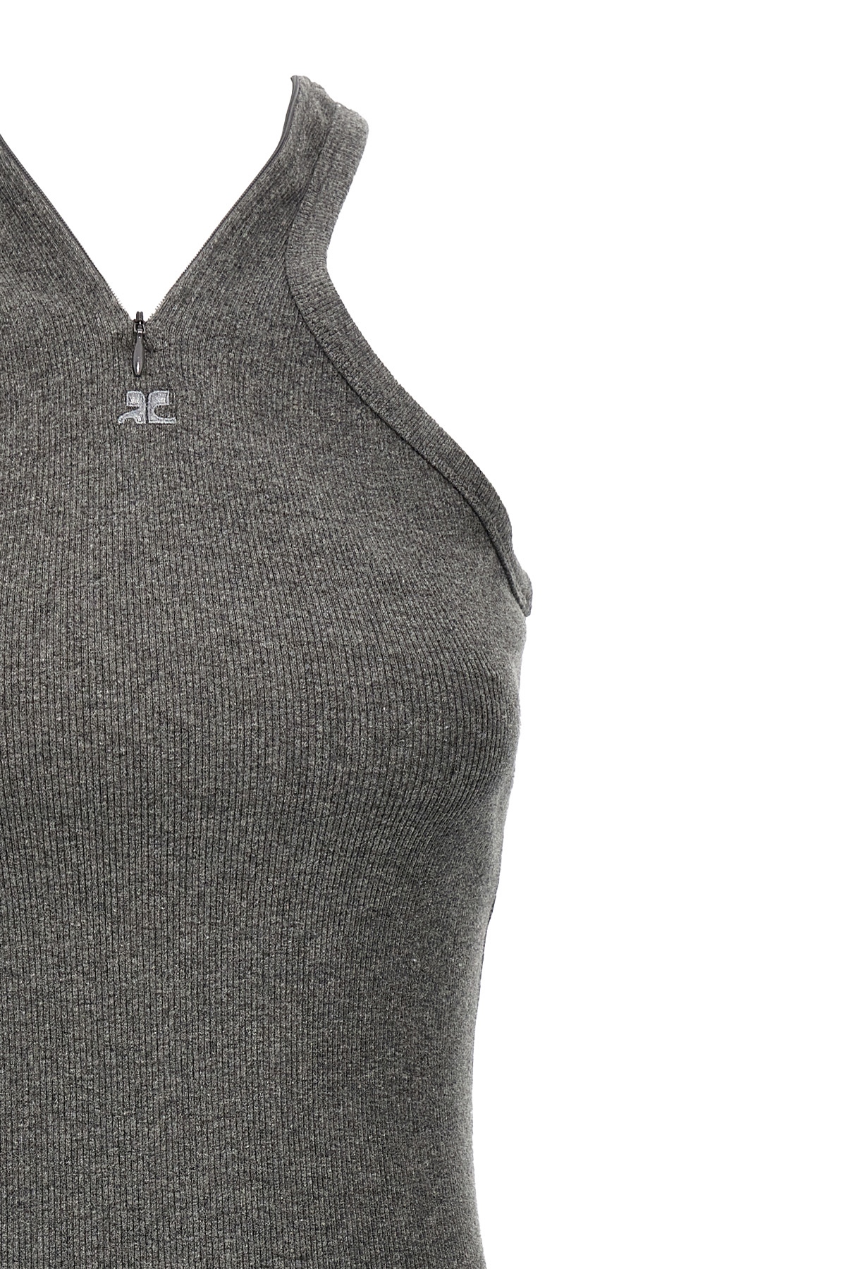 'Criss Cross 90's Mini' ribbed cotton dress with V-neck with zip detail and front logo embroidery, sleeveless.