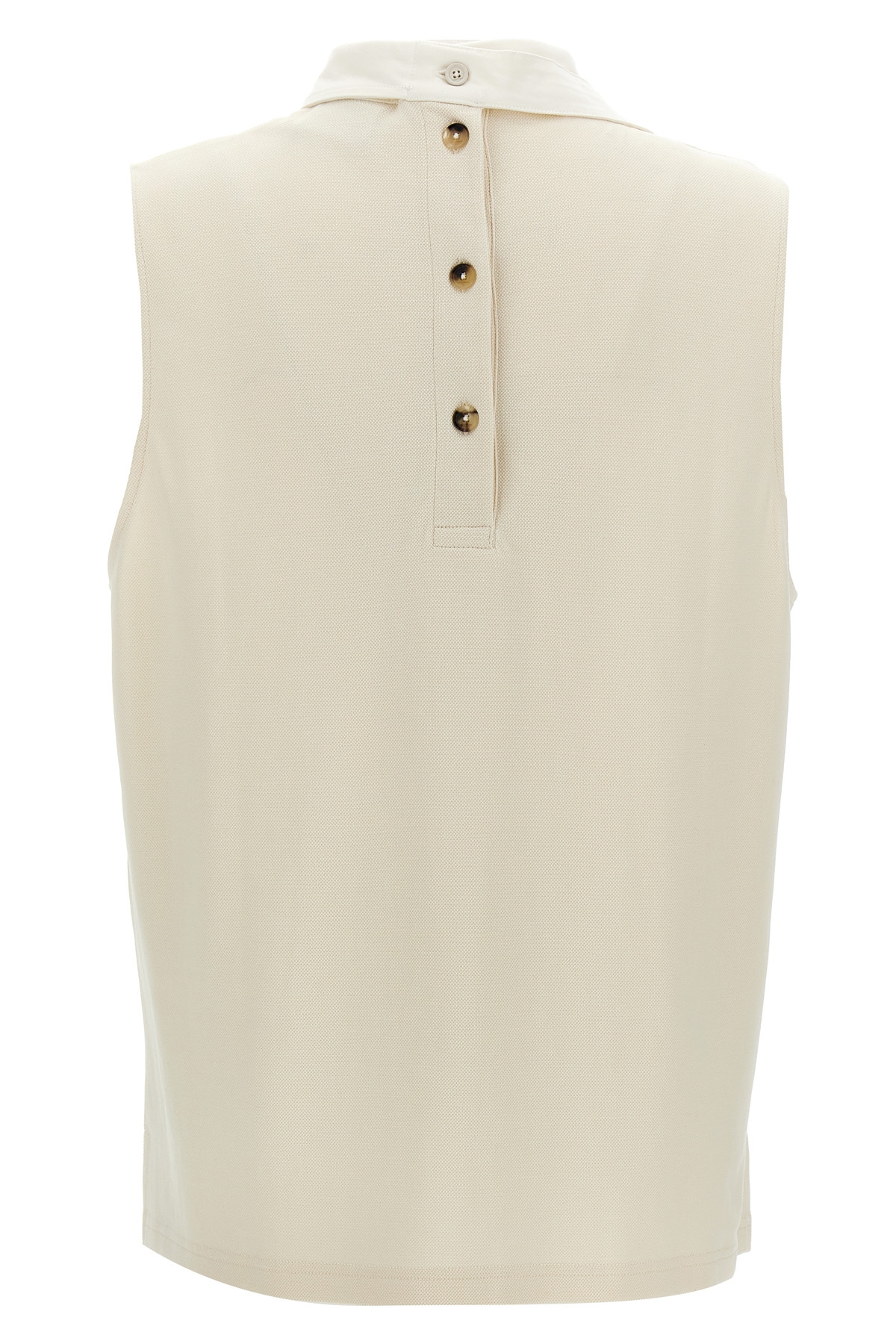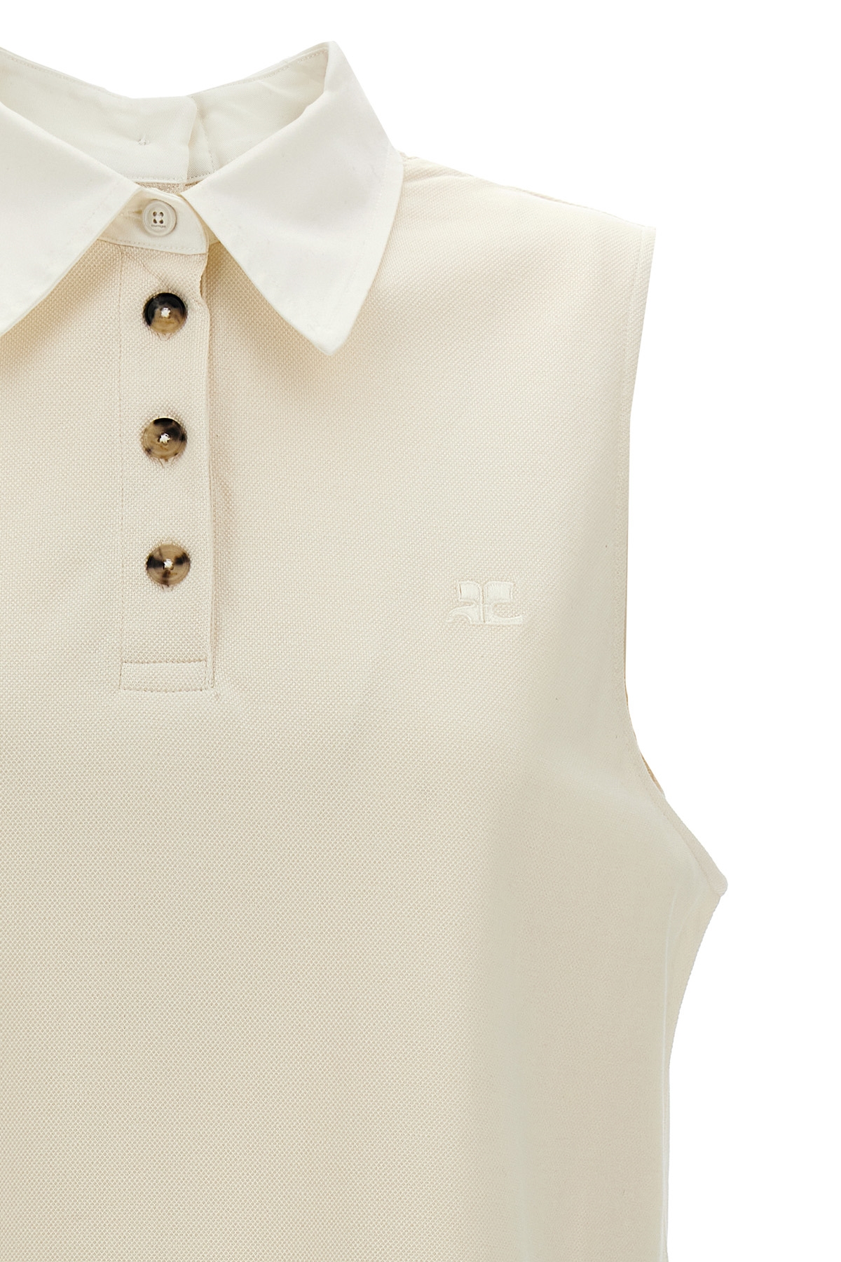 'Sangle Sleeveless' polo shirt in pique cotton with buttons on the front and back, front logo embroidery, sleeveless, collar with strap detail.
