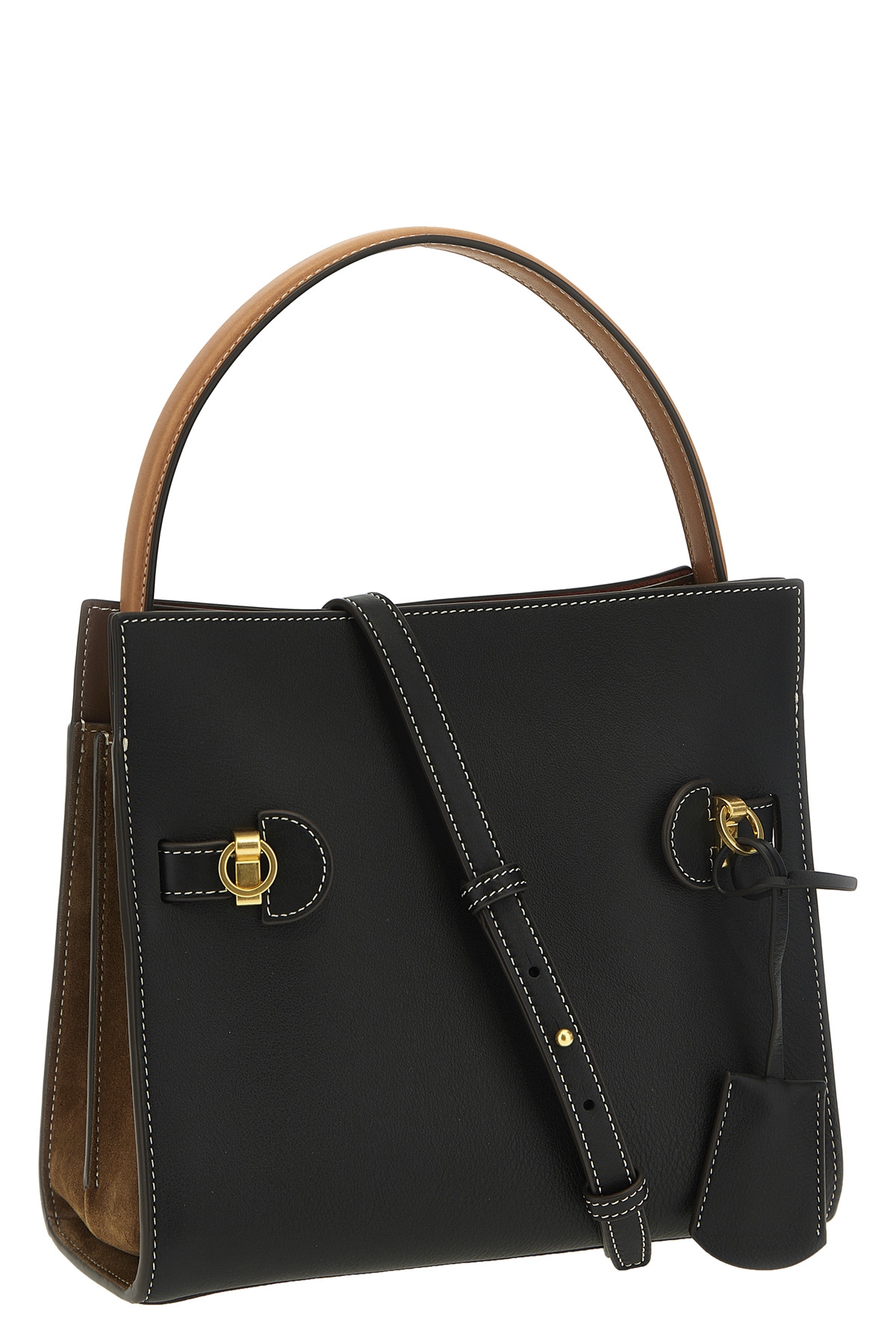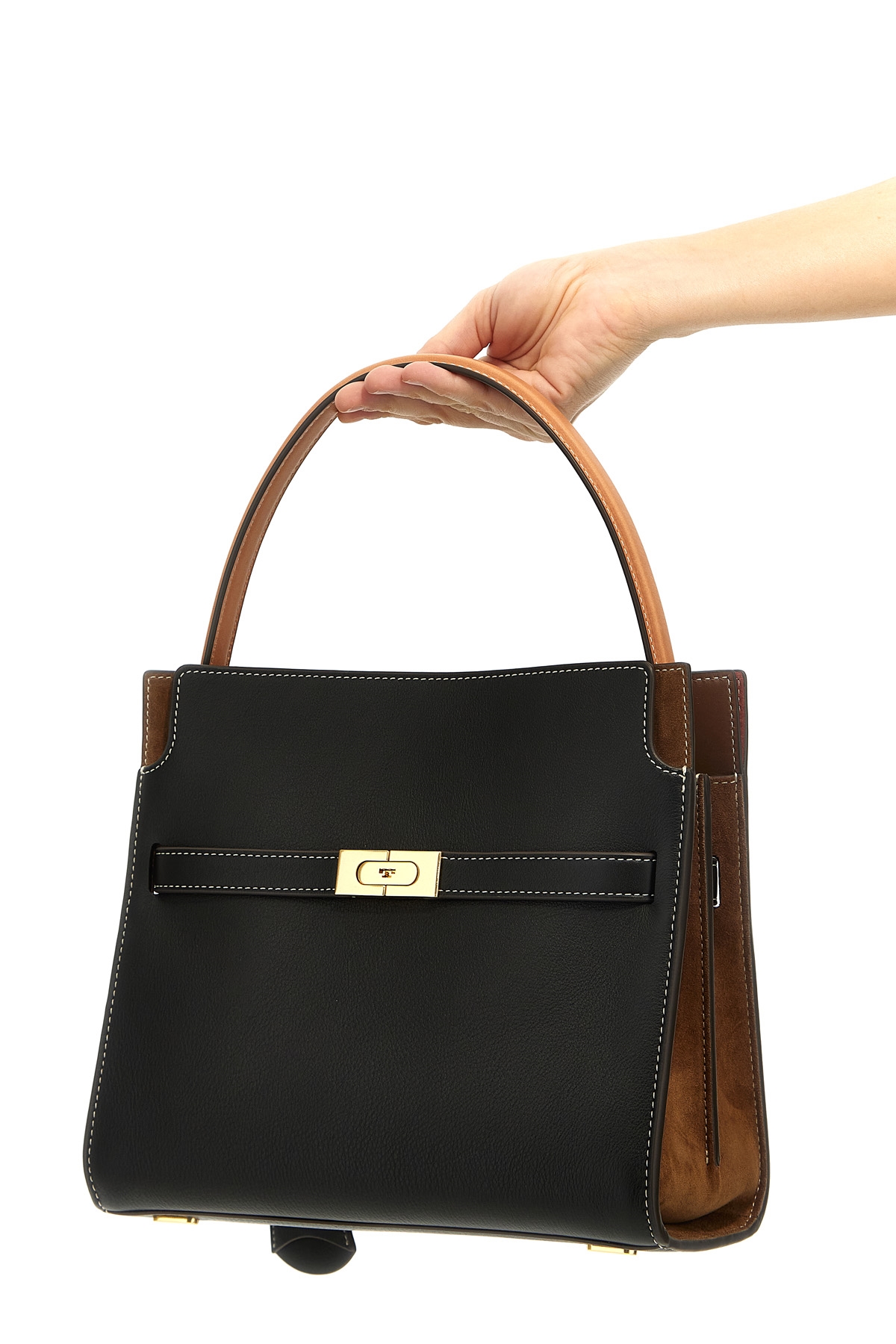 'Small Lee Radziwill' leather and suede handbag, top handle, adjustable and removable shoulder strap.