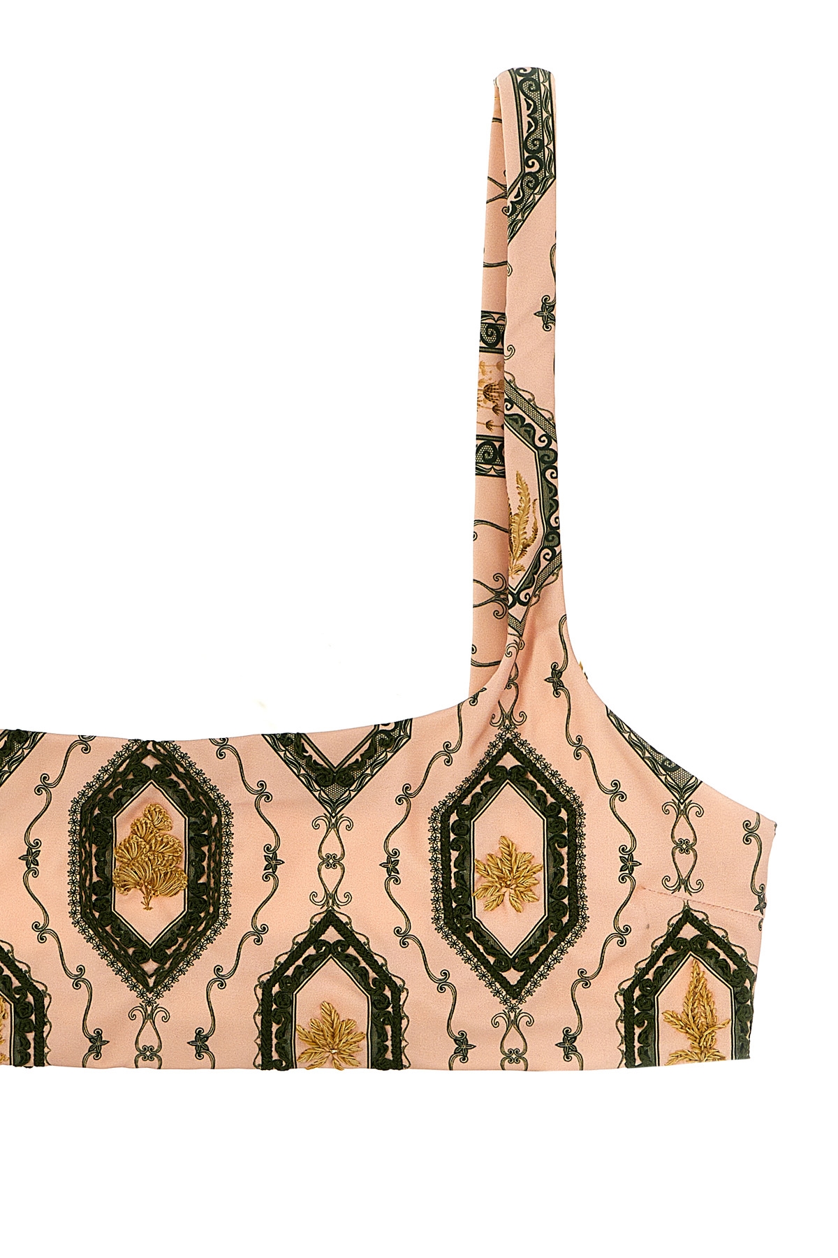 Havana Calado' bikini top in stretch fabric with all-over embroidery, thin straps, and back hook closure.