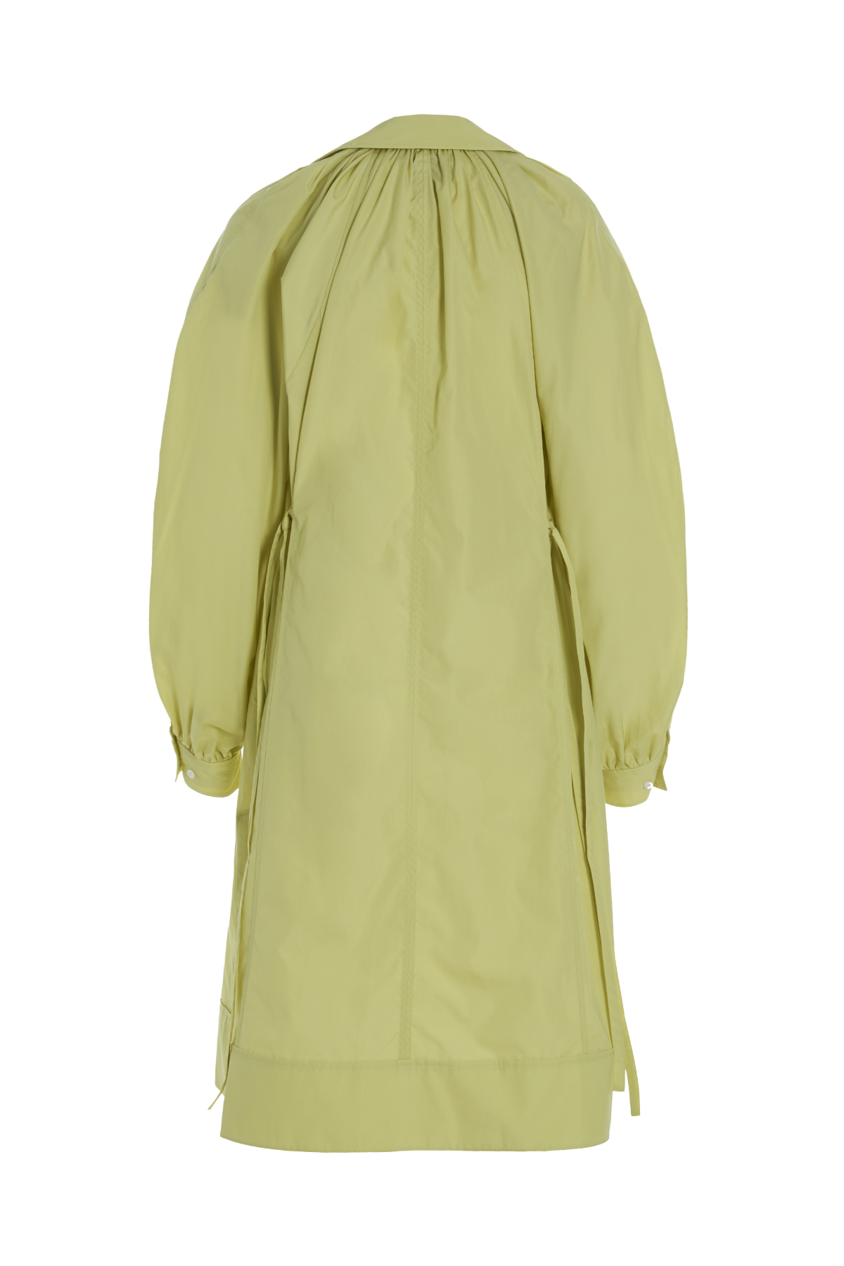 Shirt dress in poplin cotton, front button closure, adjustable laces at the sides, long wide sleeves with cuffs.