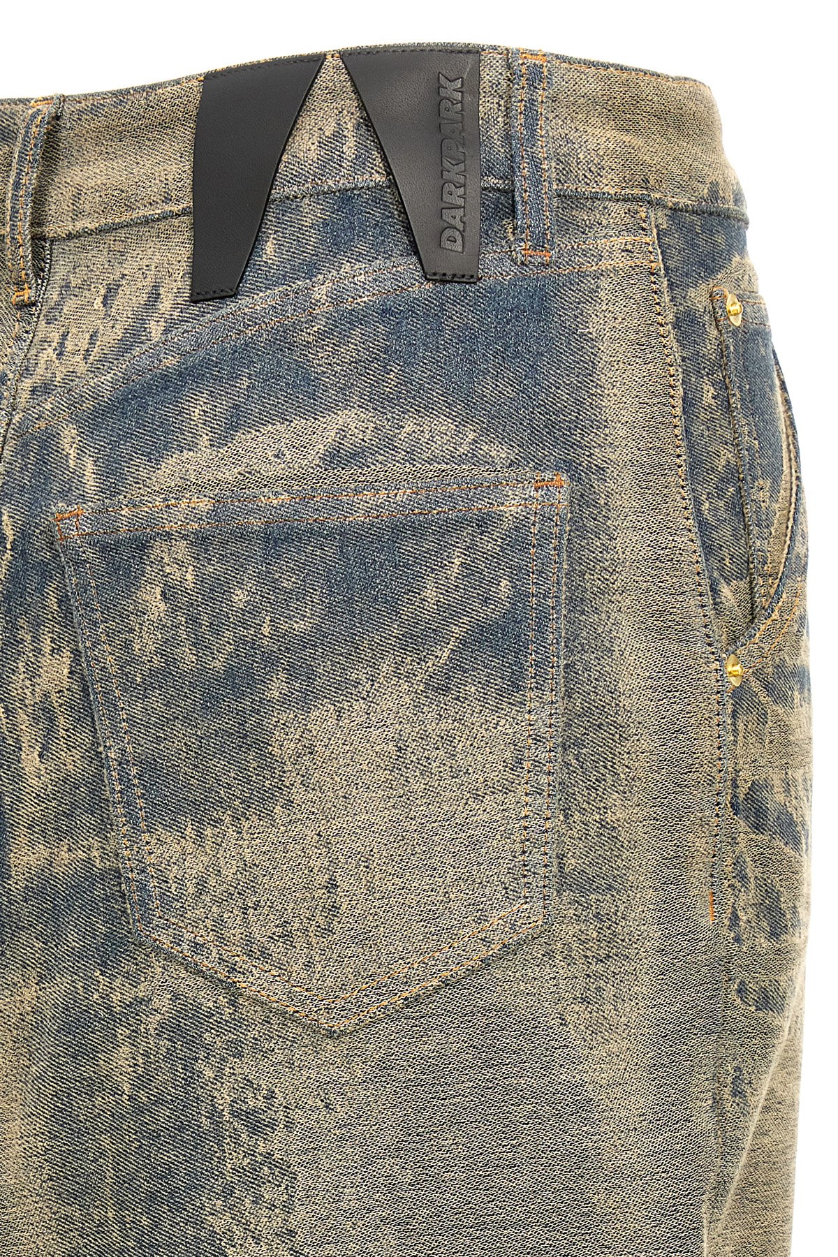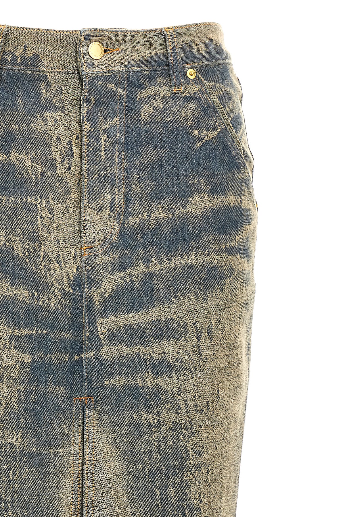 'Erika' vintage effect cotton denim blend skirt, zip and button closure, five pockets, maxi front and back split.