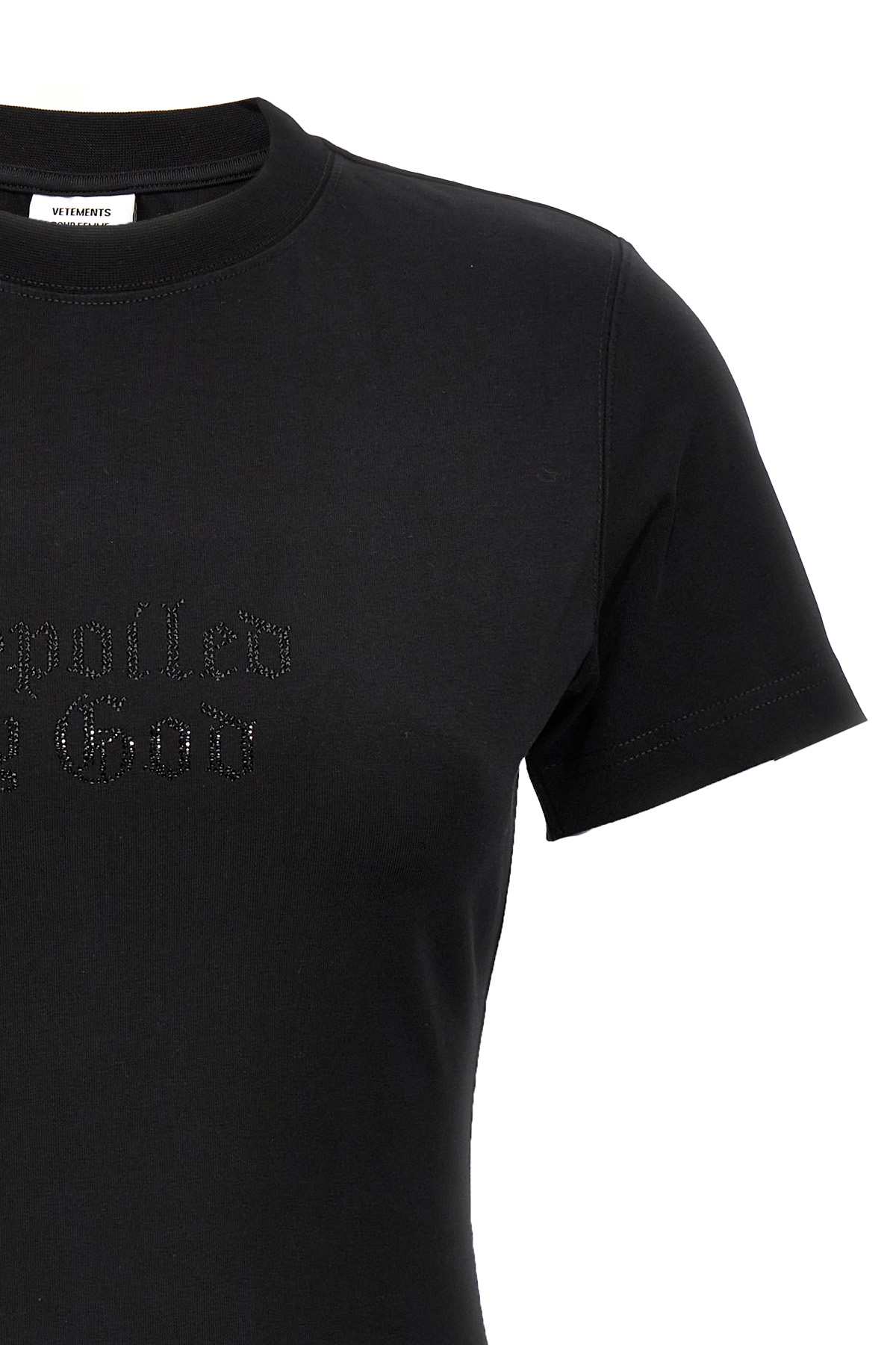 'Spoiled By God' cotton blend T-shirt with front rhinestones, crew neck, short sleeves.