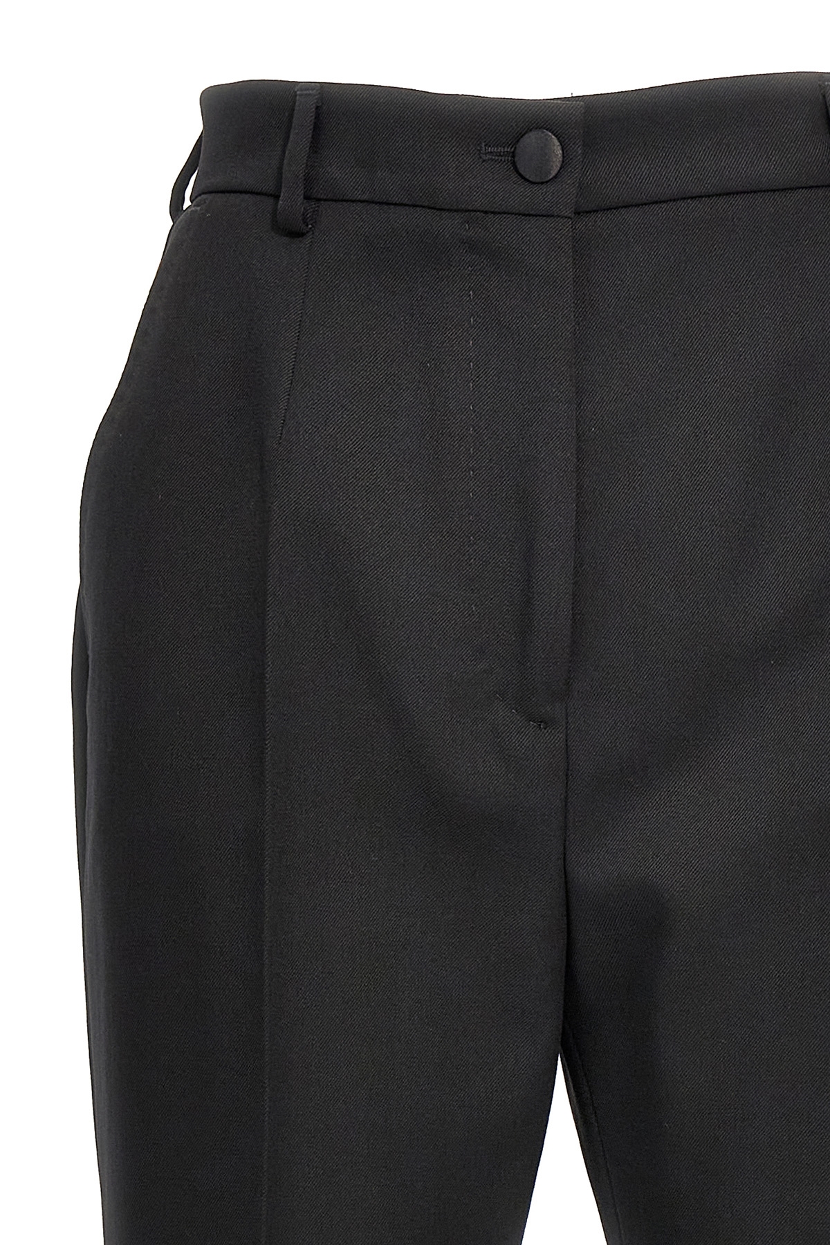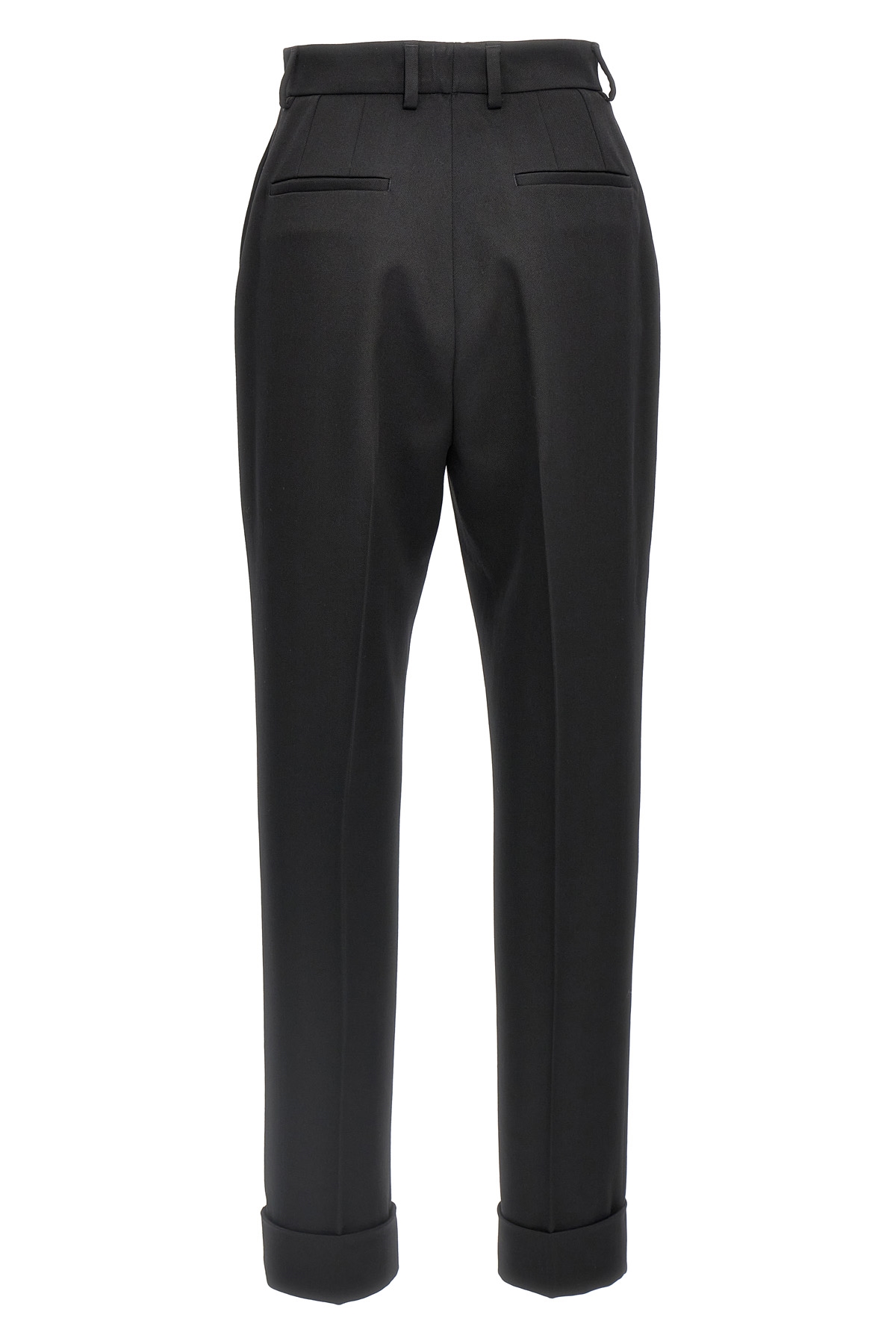 Tailored wool trousers, zip and button closure, pockets, straight leg with ironed pleat and turned-up hem.