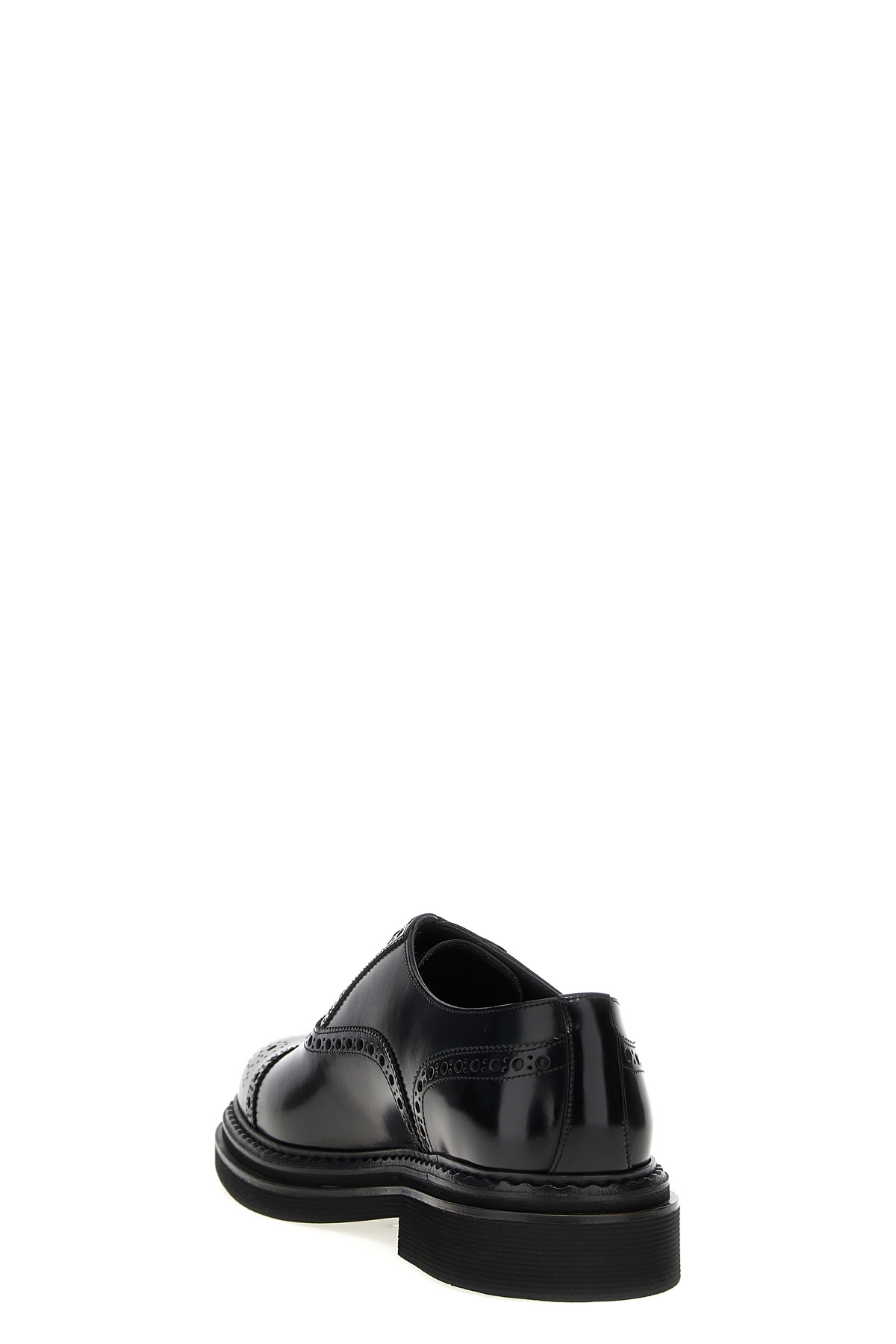 Brogue calf leather lace up shoes featuring a rubber sole.
