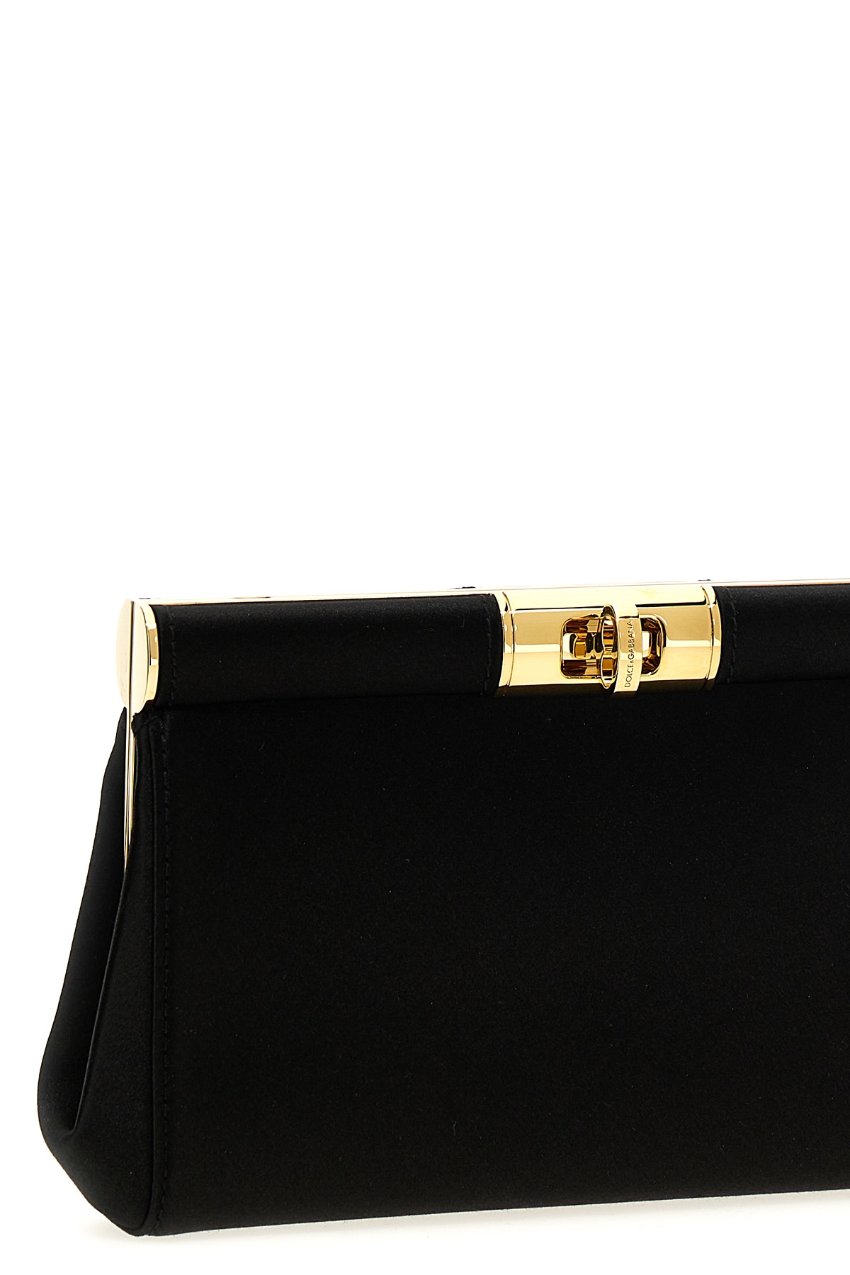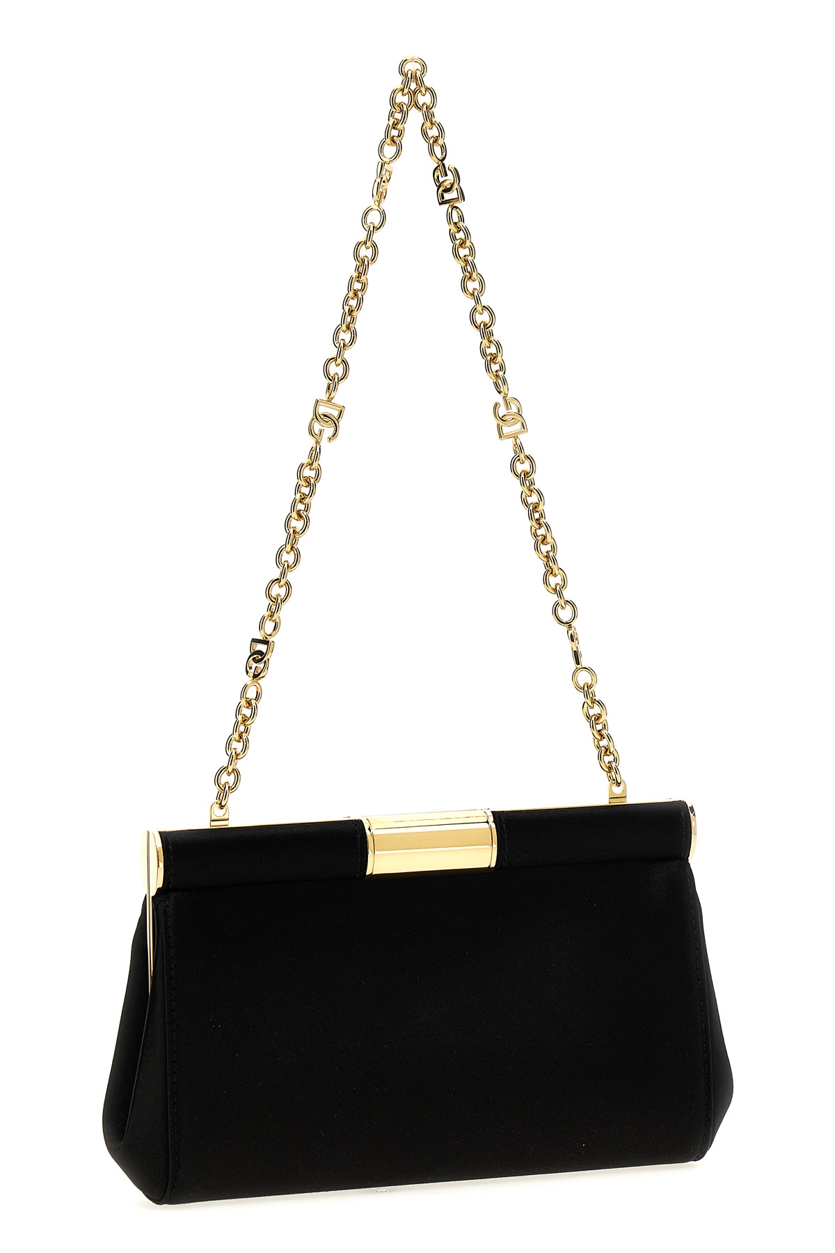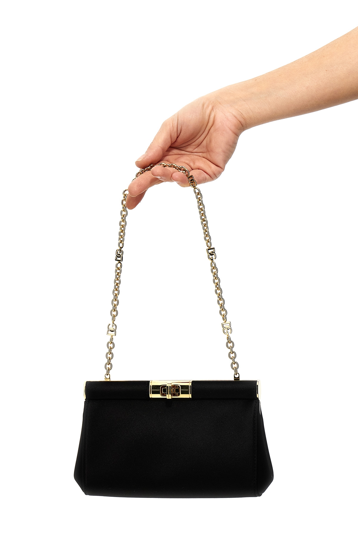 Small 'Marlene' satin shoulder bag, gold galvanized metal turn lock, chain shoulder strap, satin lining.
