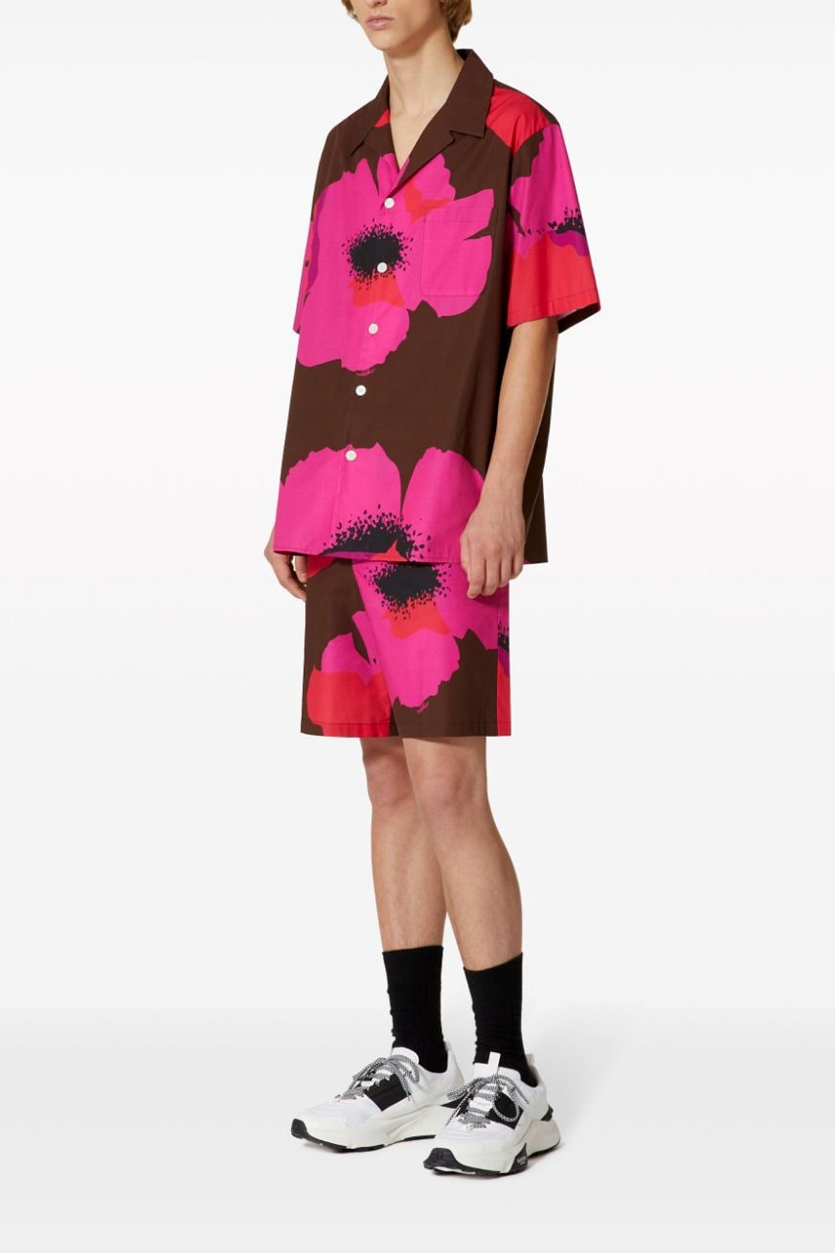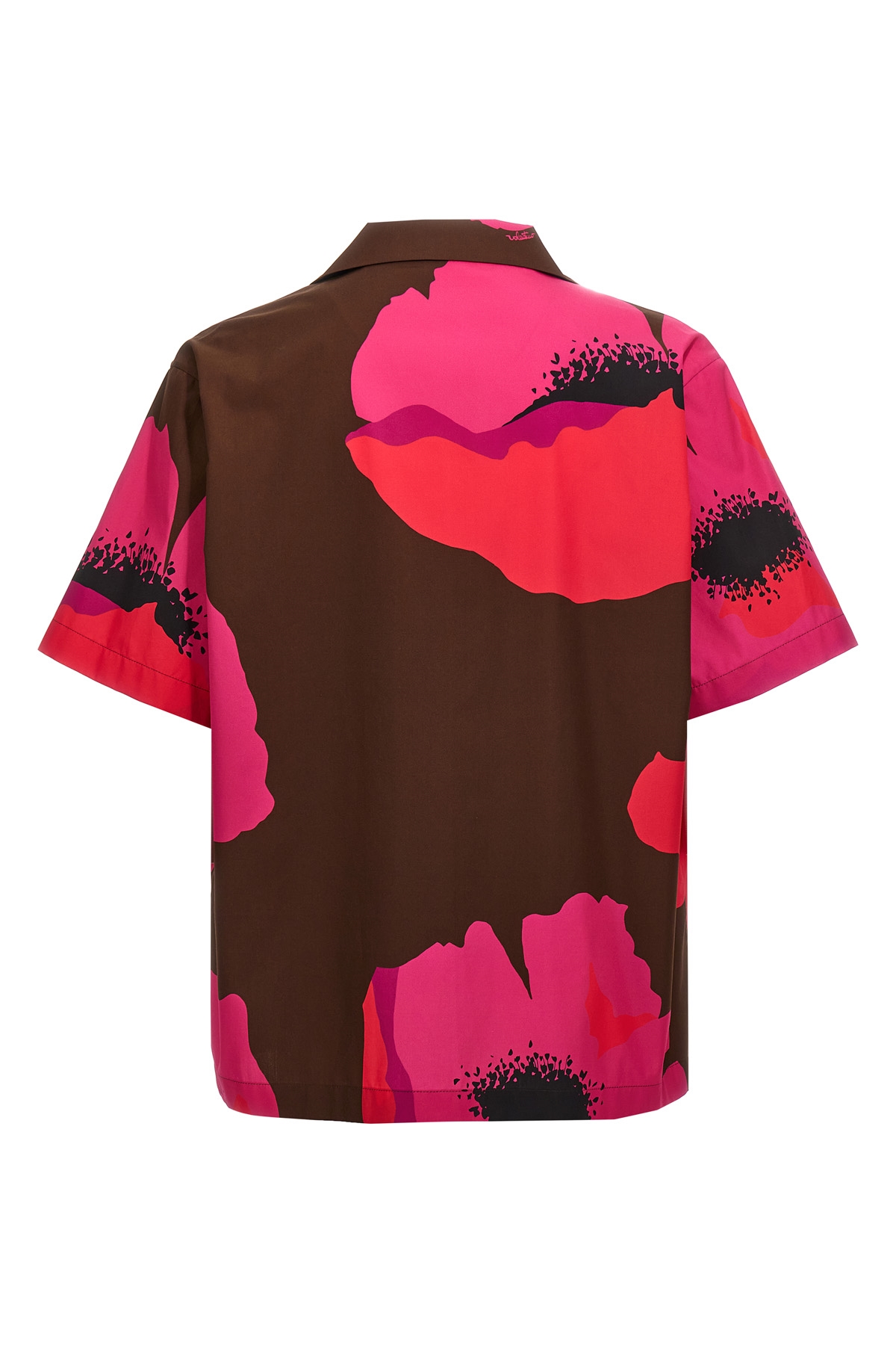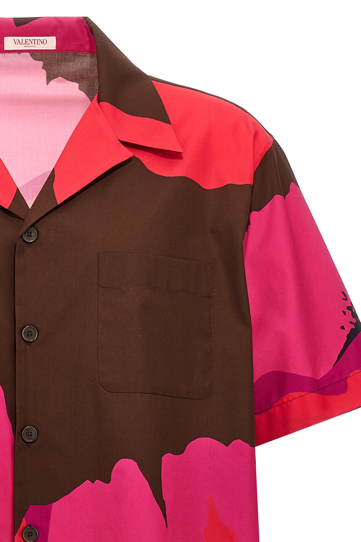 Floral print cotton shirt, front pocket, button closure, short sleeves.