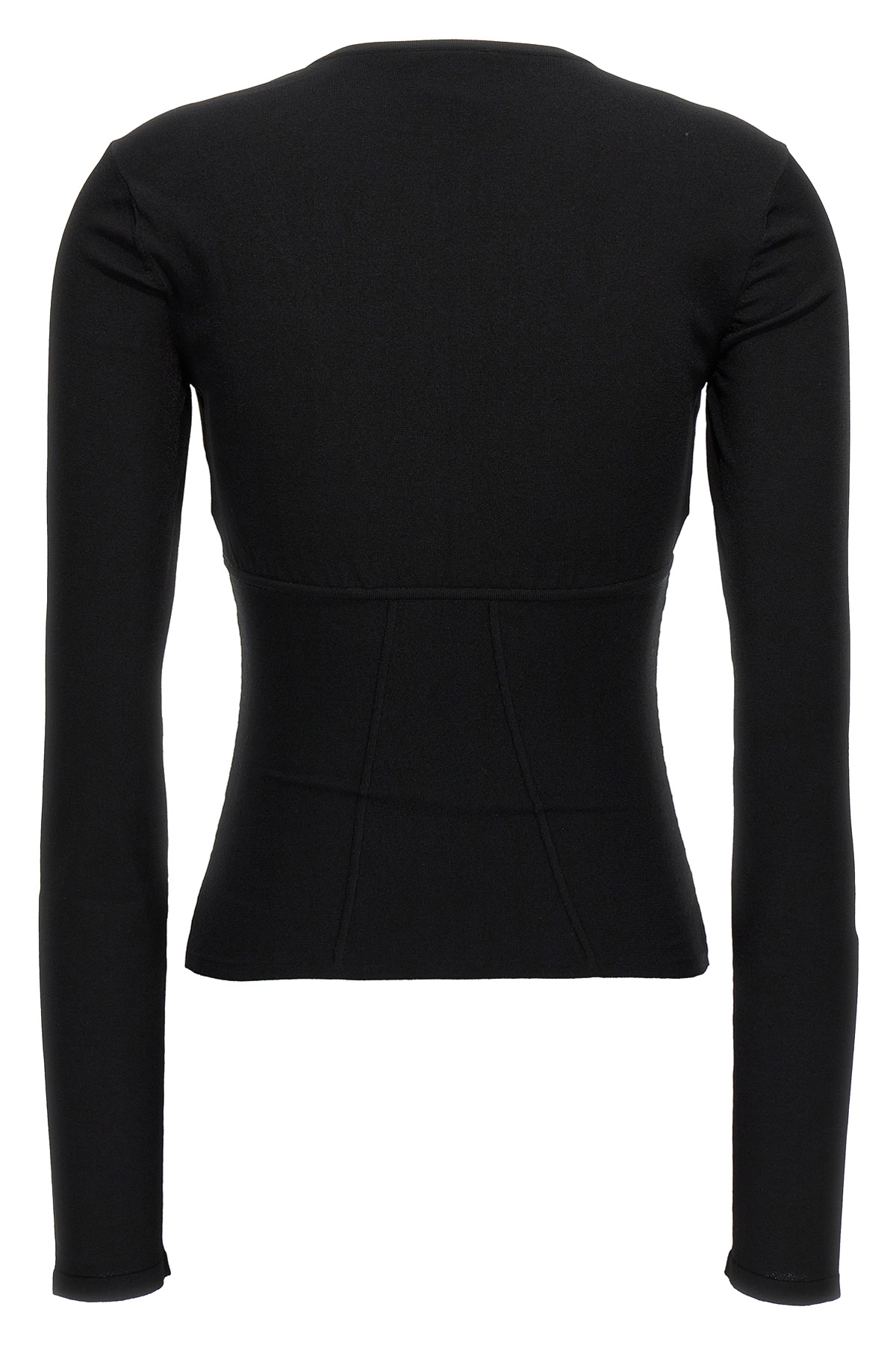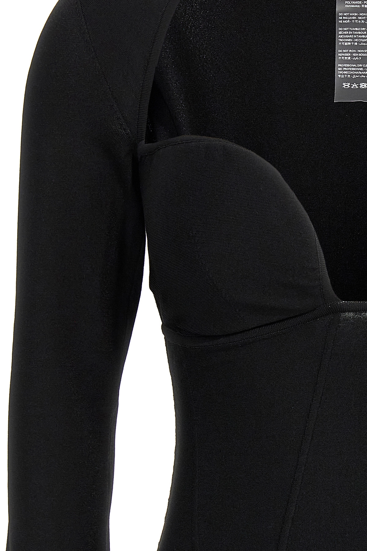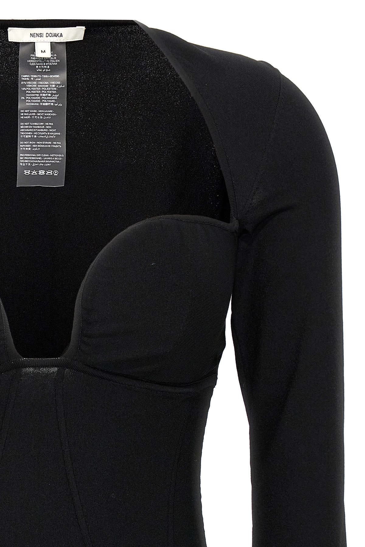 'Bustier' stretch knit top, padded cups, wide neckline, long sleeves.
