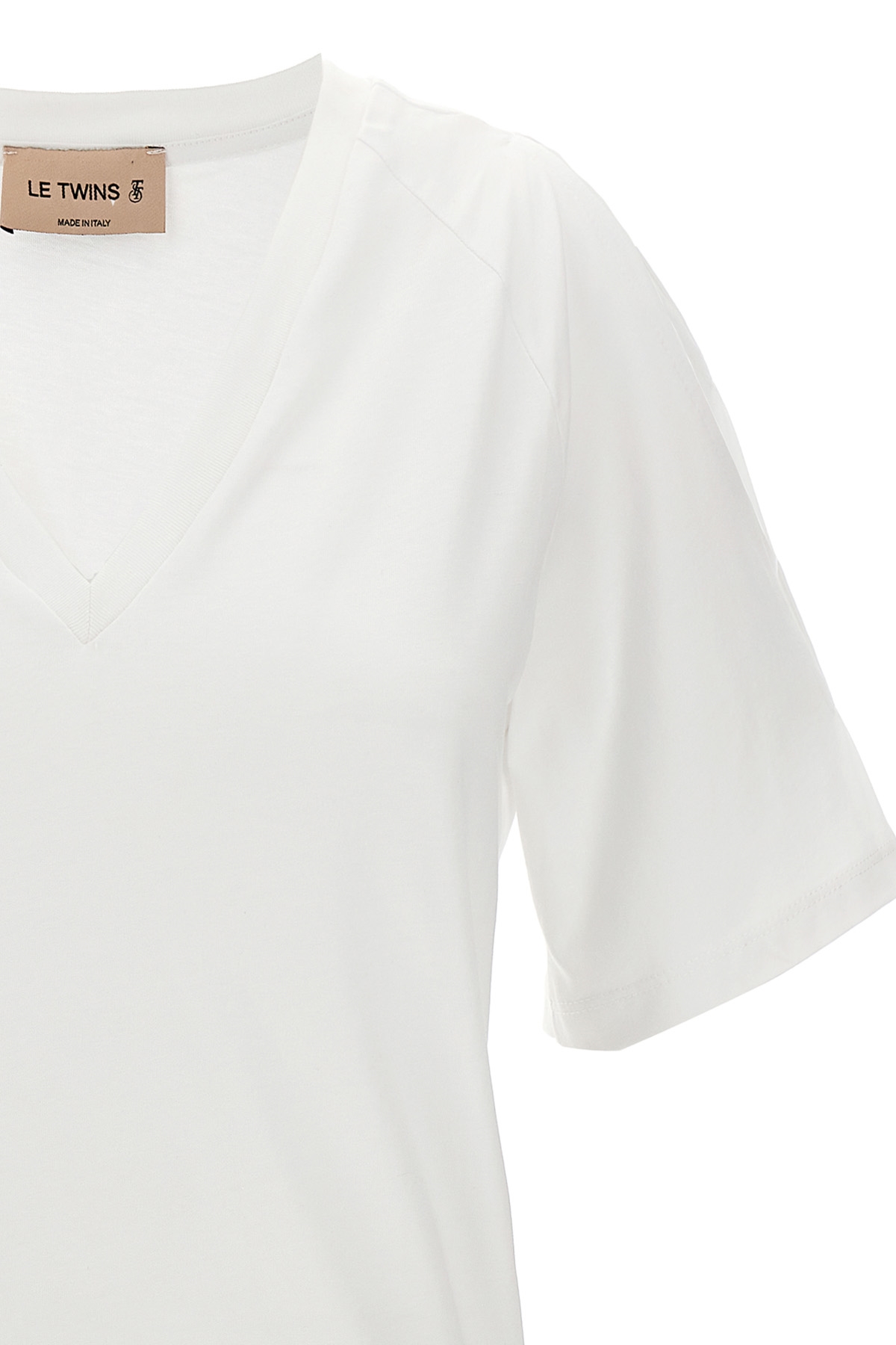 'Gianna' cotton T-shirt with short sleeves, V-neck, cut-out detail on the shoulders.