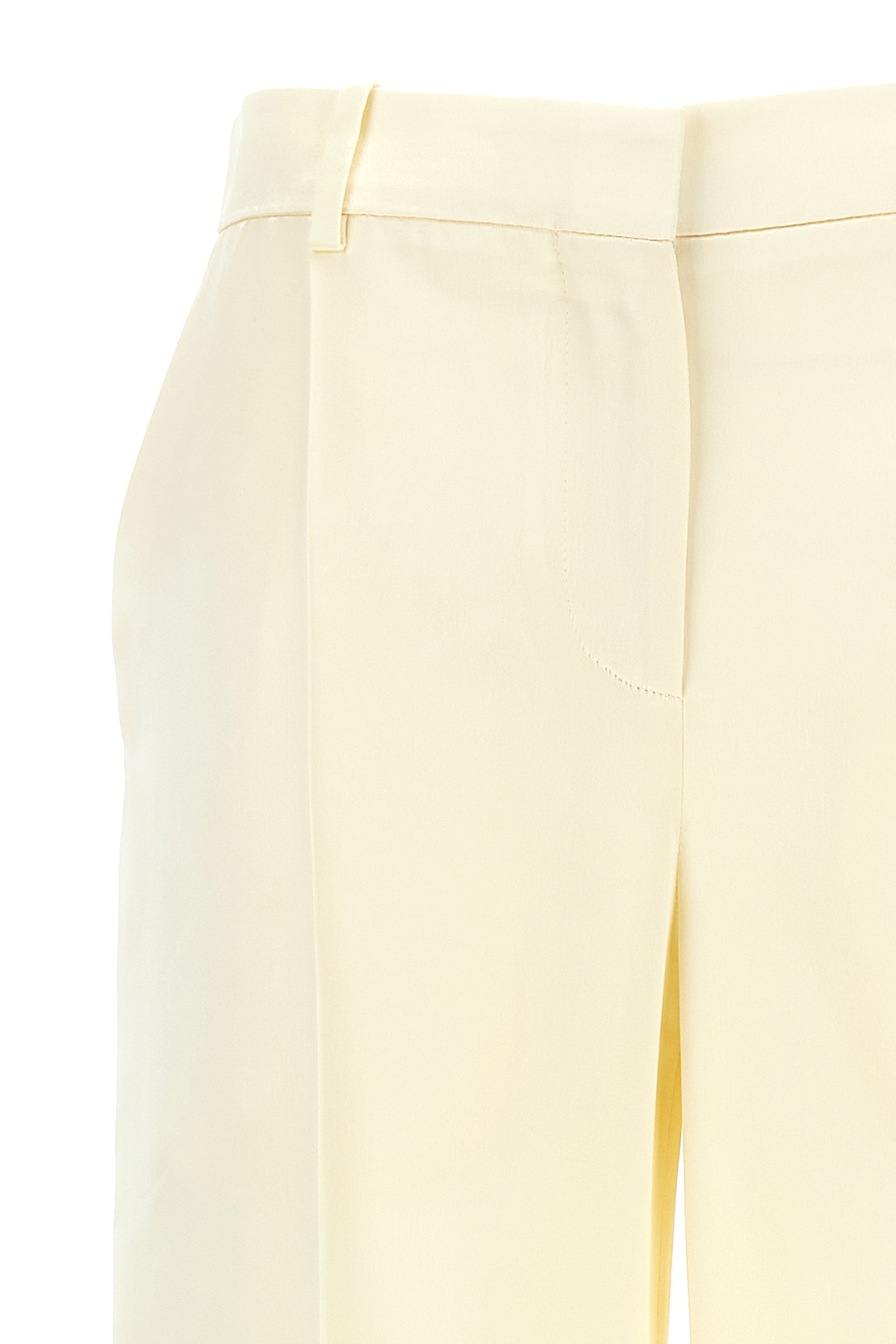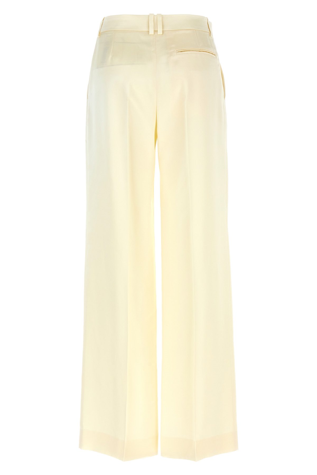 'Encore' tailored silk trousers, straight leg, ironed central crease, hook and button zip closure, pockets