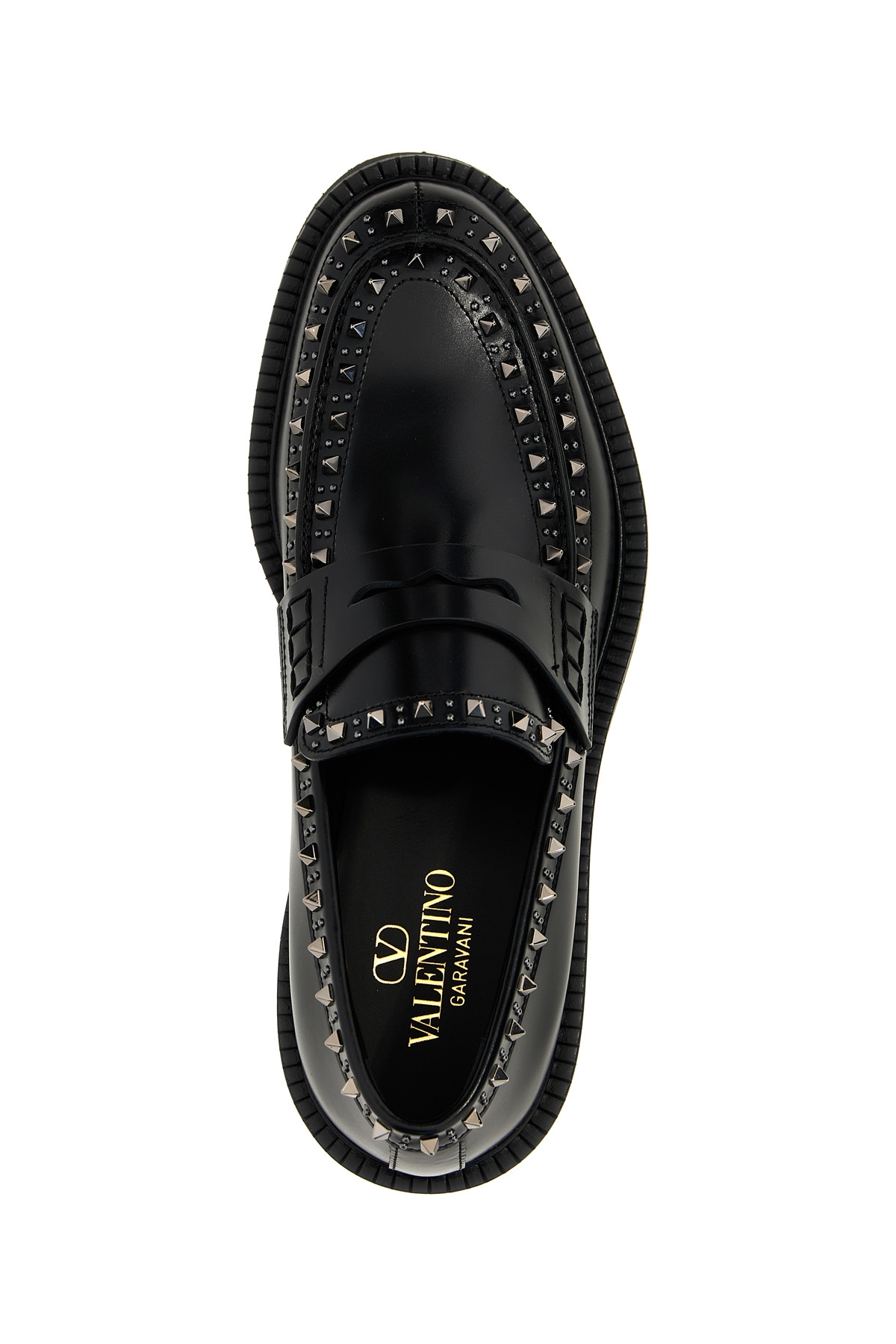 'Gentleglam' calf leather loafers with mini stud and rivet appliques, rubber sole.
