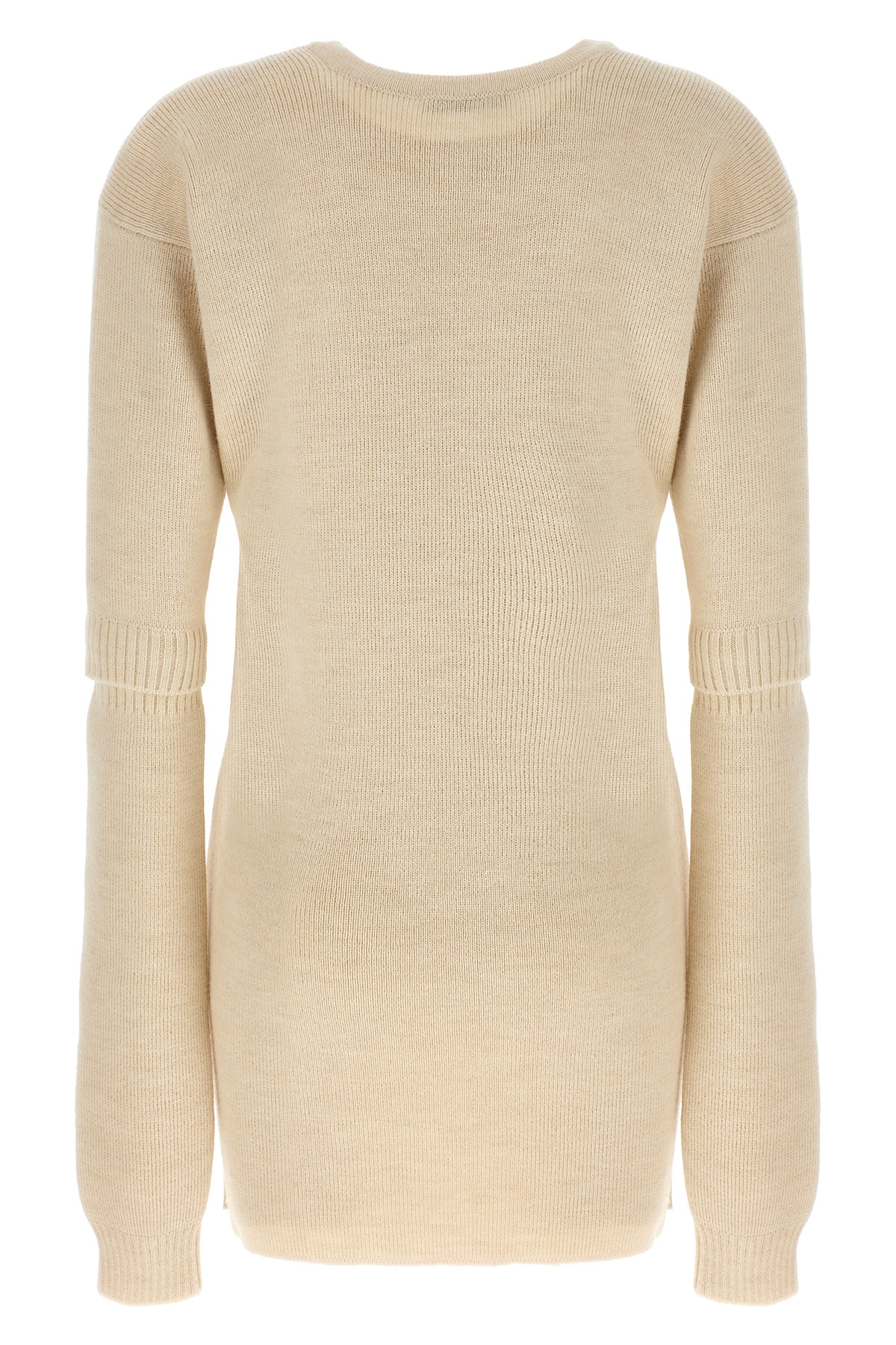 Alpaca-blend knit dress, crew neck with removable sleeves.