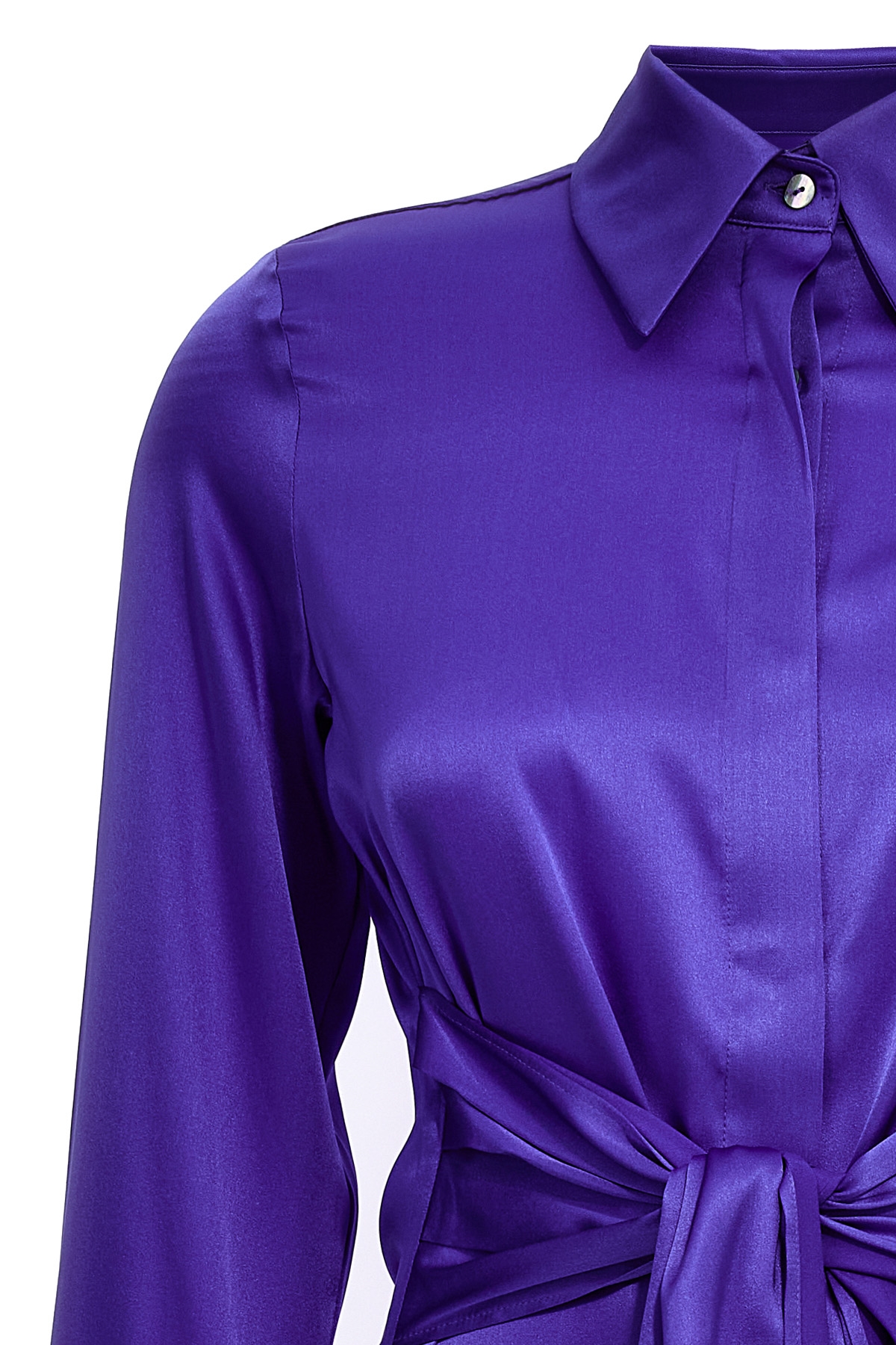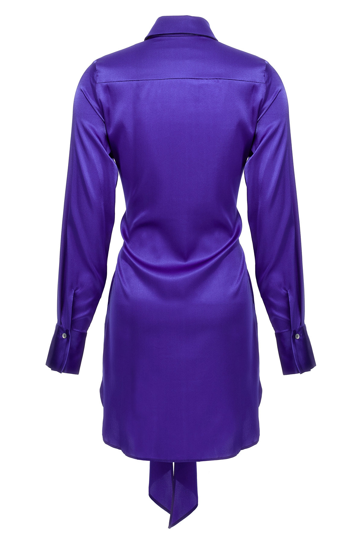 'Cervia' short dress with stretch silk shirt pattern and knotted at the waist.