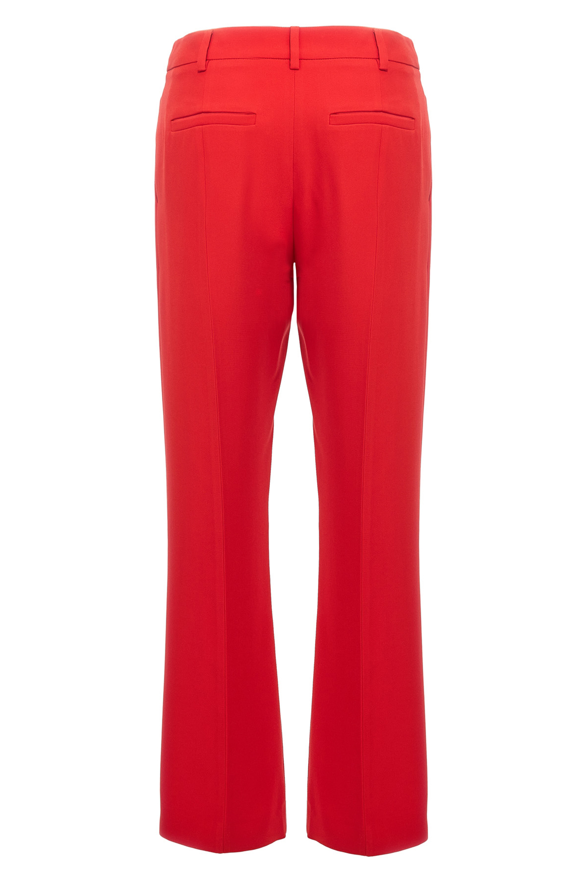 Silk cady trousers, zip and hook closure, pockets, ironed crease.