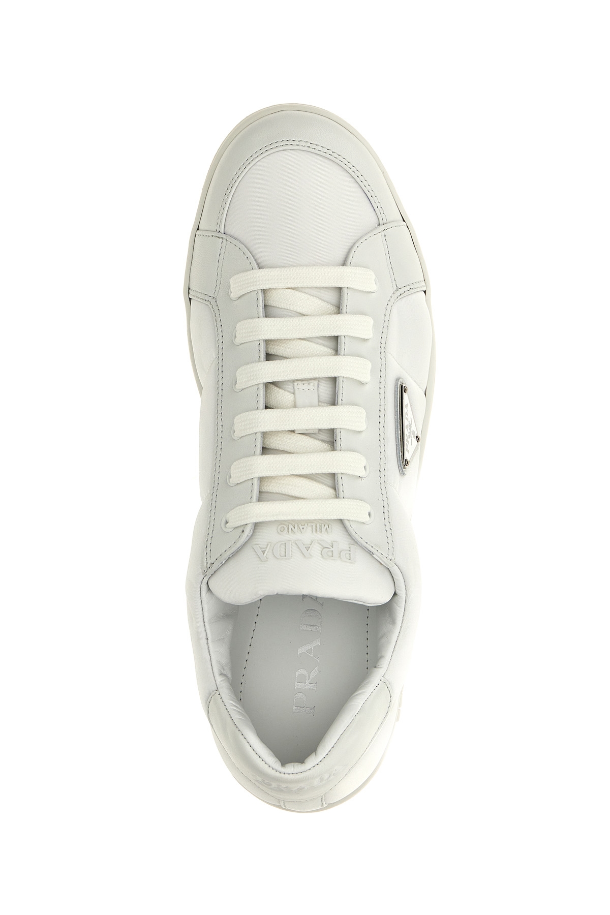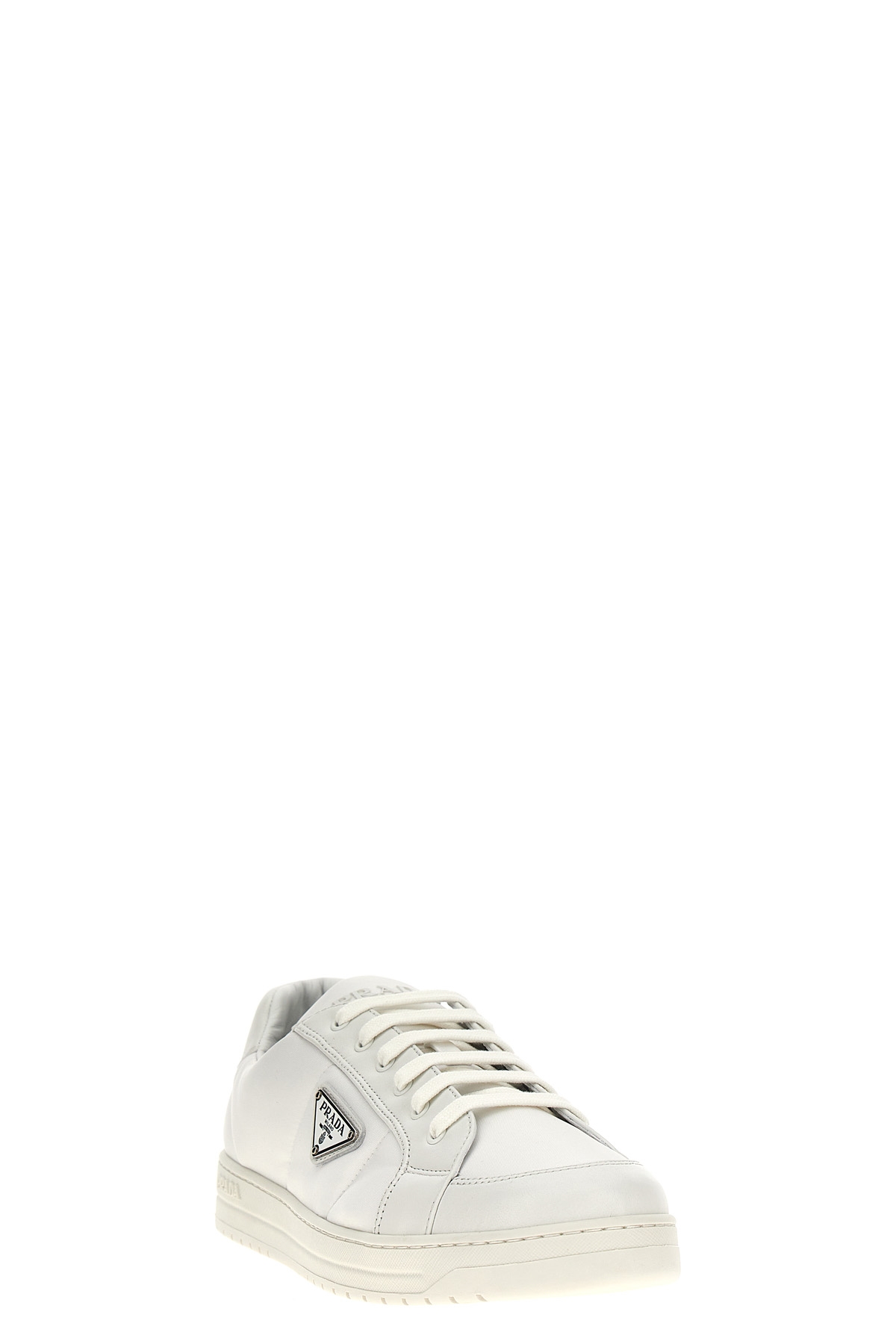 'Downtown' sneakers in Re-Nylon and leather with side triangle logo, laces, rubber sole.