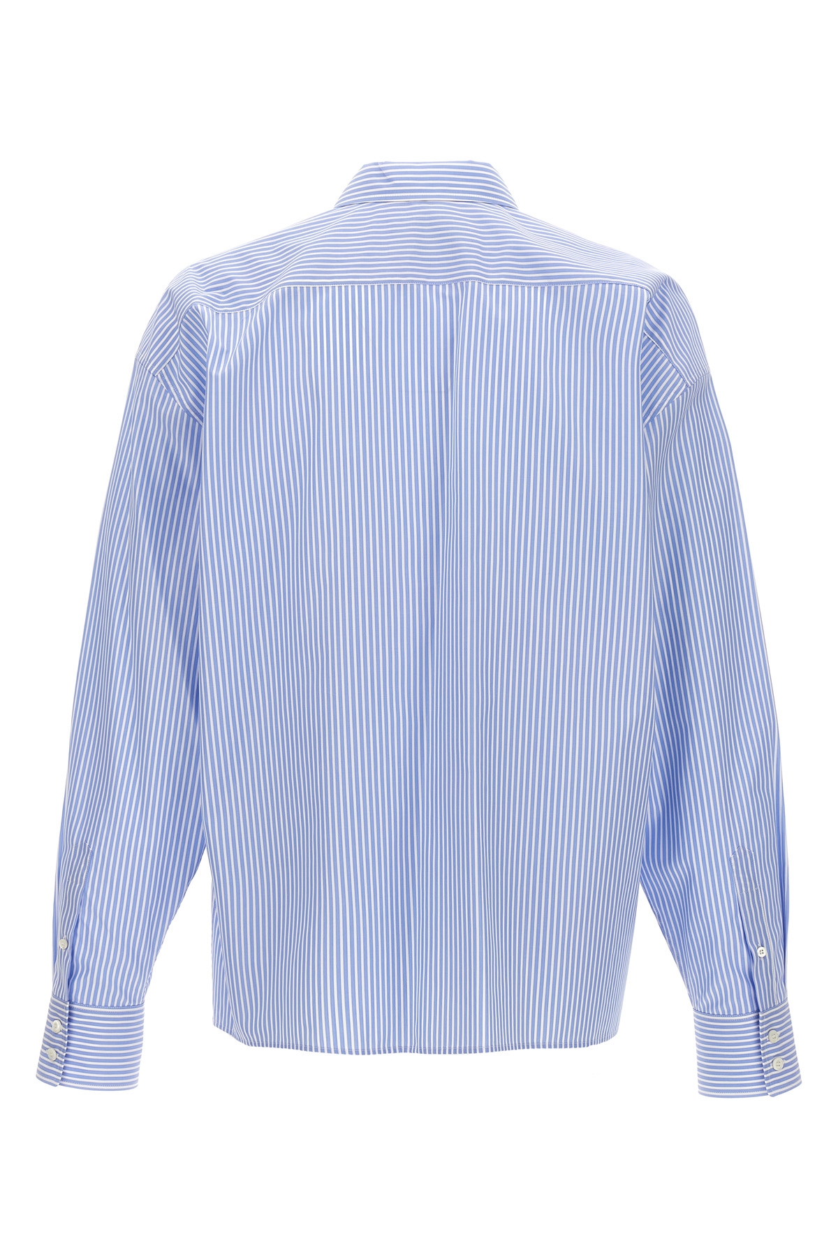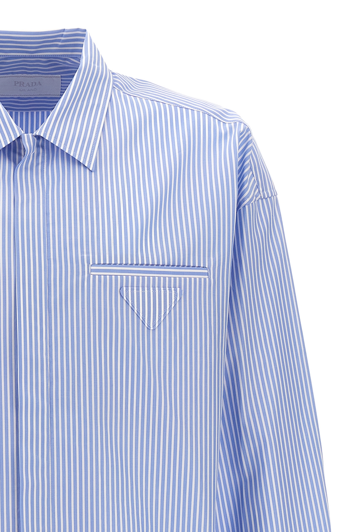 Striped cotton poplin shirt, front pocket with front triangle logo applique, zip closure, long cuffed sleeves.