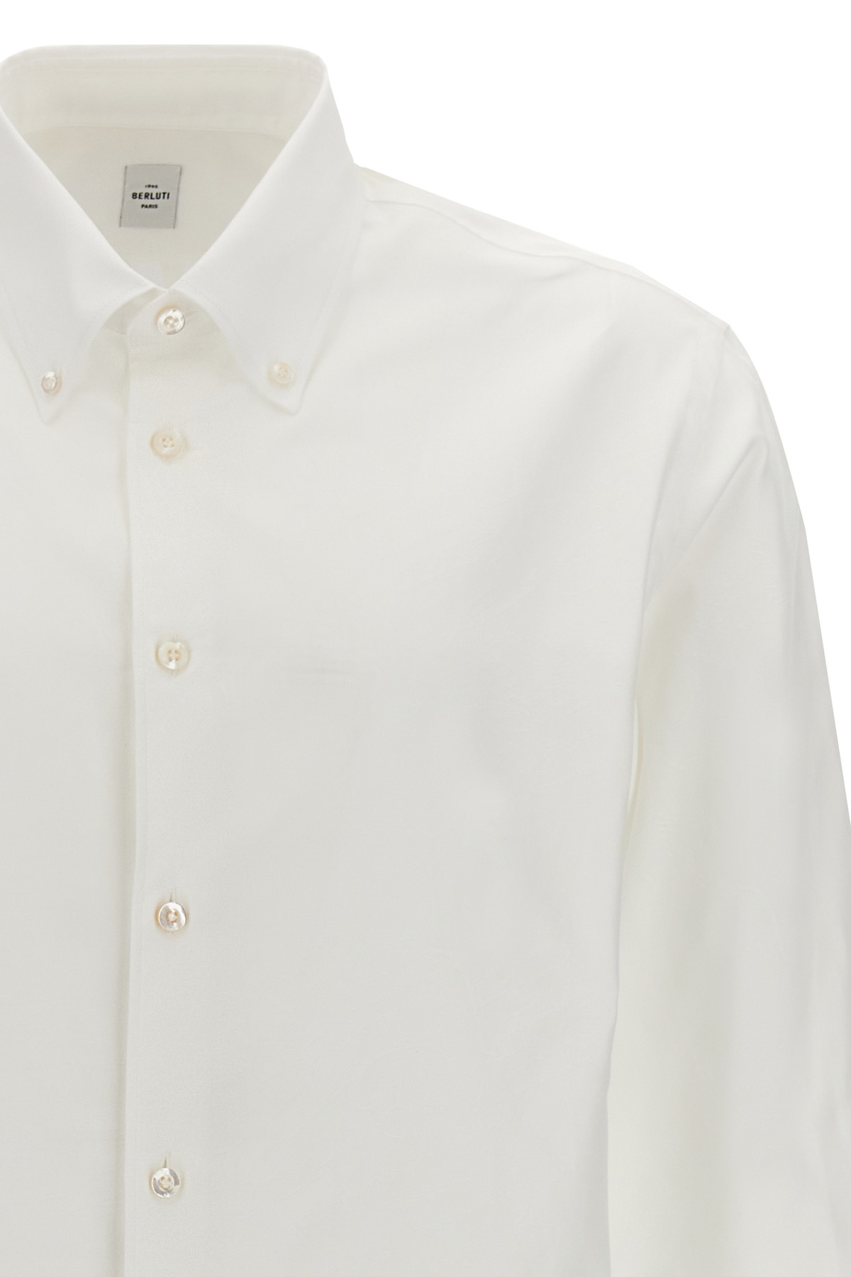 Cotton shirt with all-over 'Scritto Alessandro' pattern, button closure, long cuffed sleeves.
