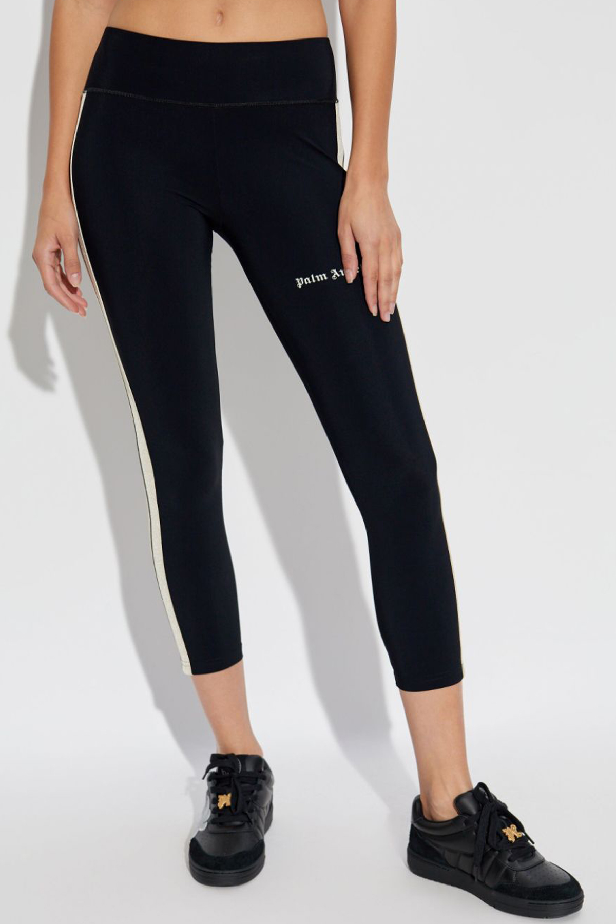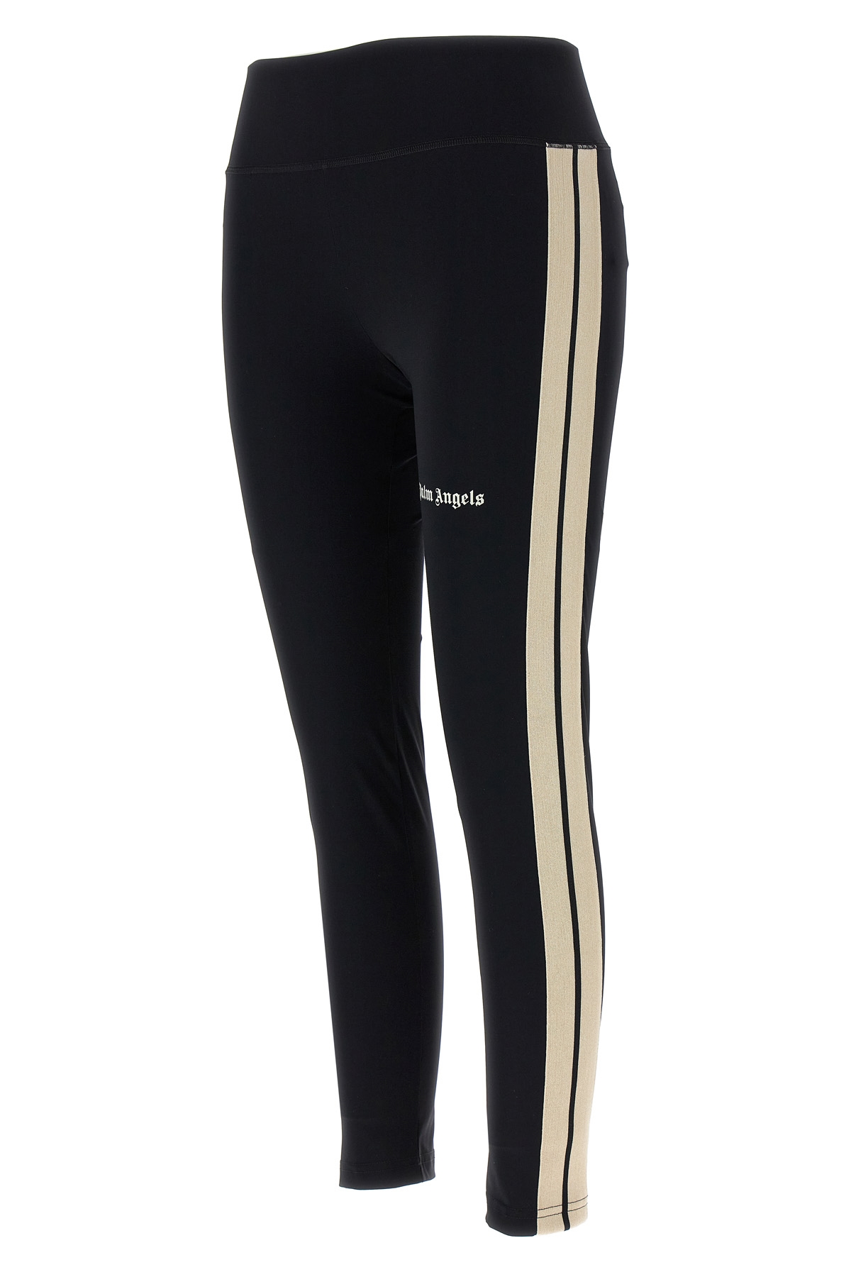 'Training Track' stretch fabric leggings with front logo print, contrast side bands, elastic waistband.