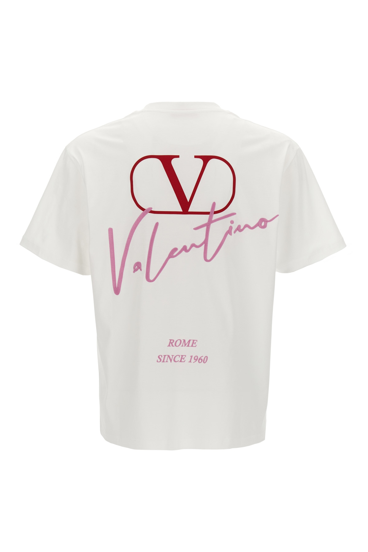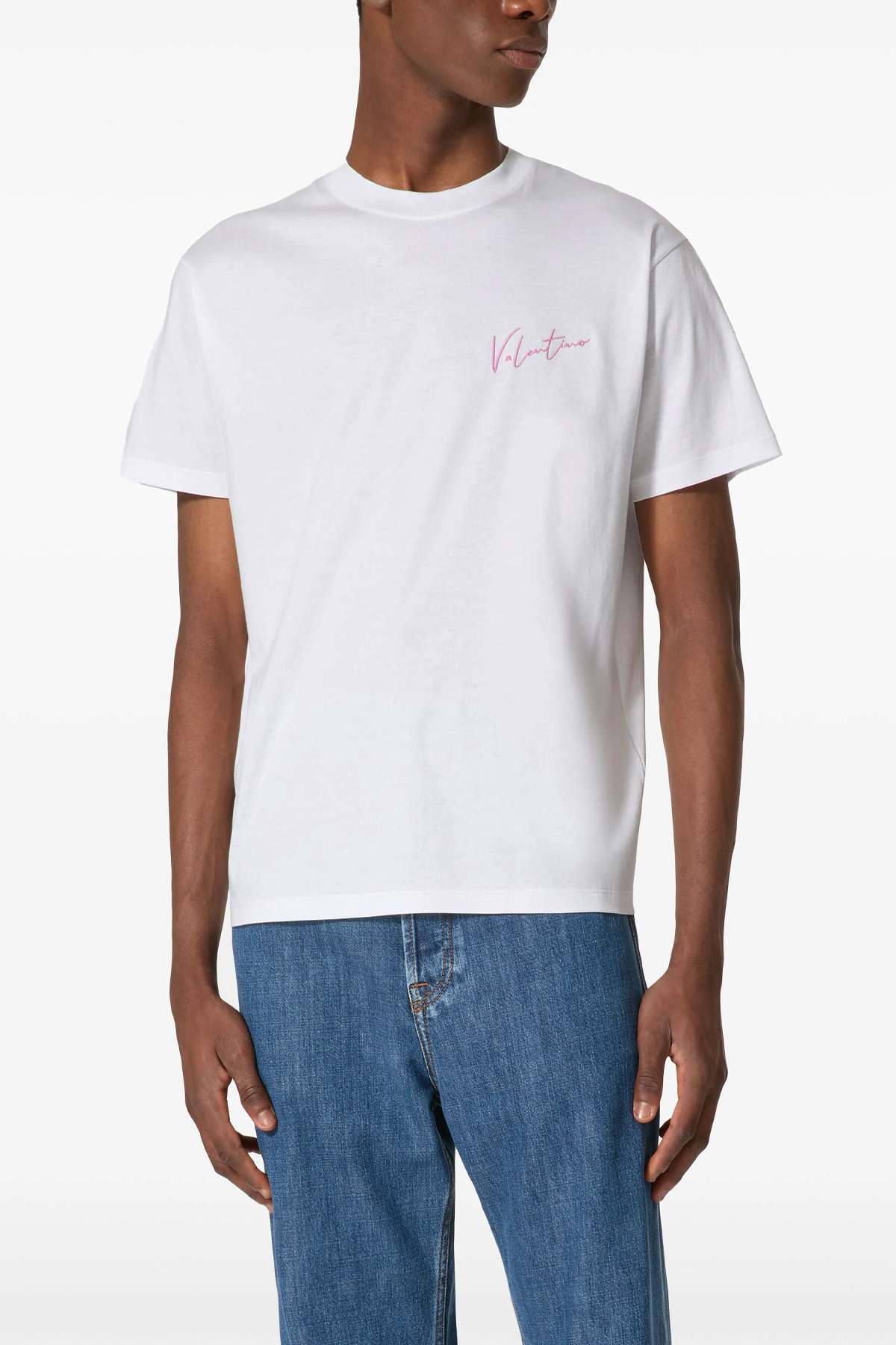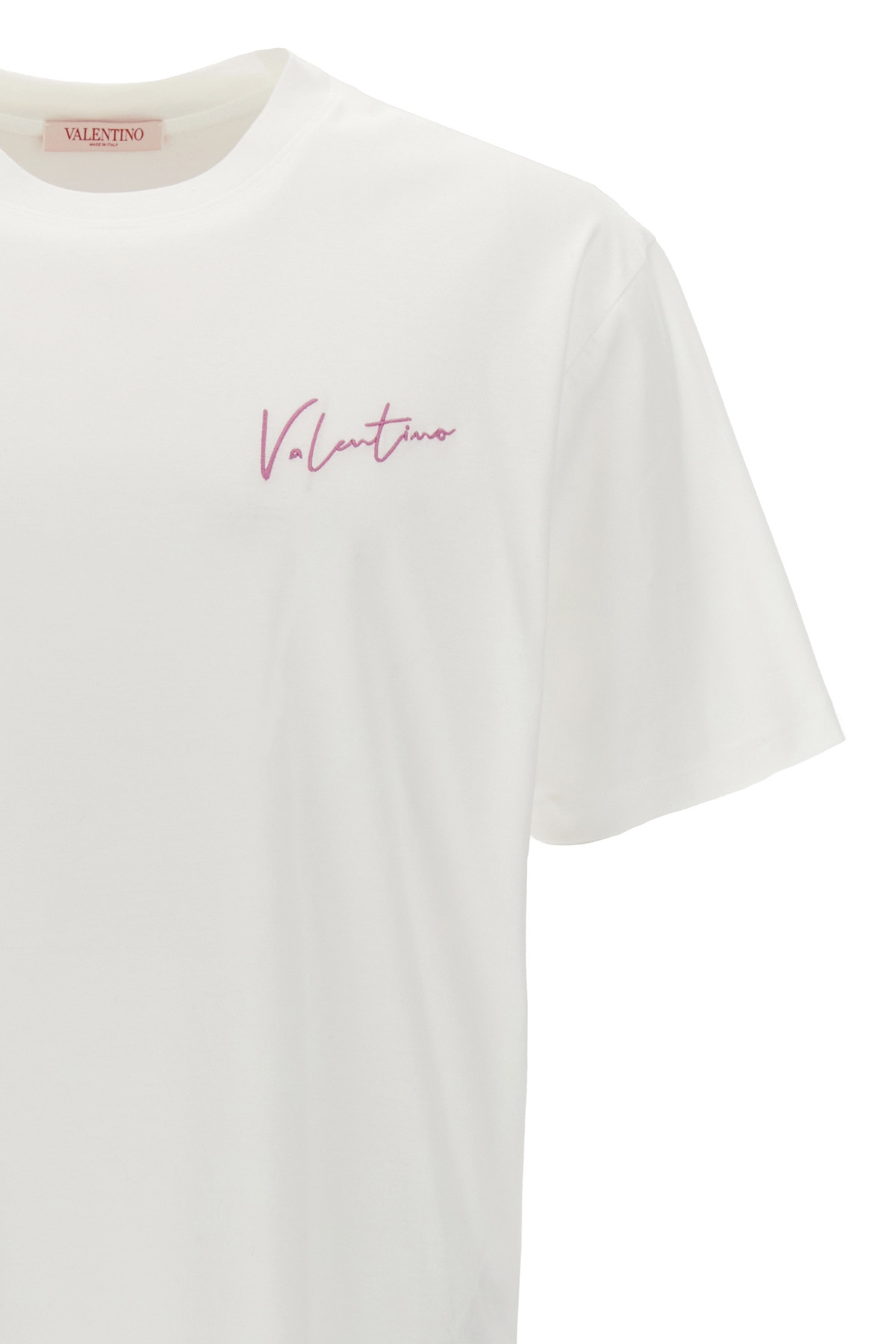 'Valentino' cotton T-shirt with embroidery on the front and back, back print, crew neck, short sleeves.