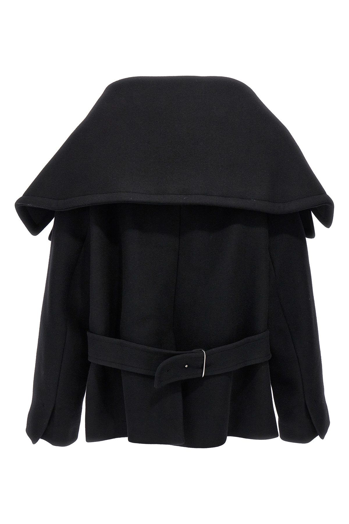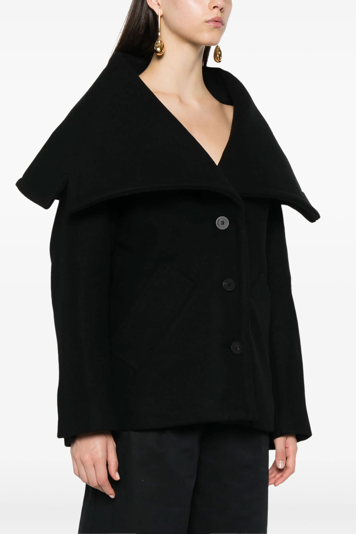 'Le caban Caruso' wool coat with single-breasted button closure, moon sleeves, shawl collar, adjustable martingale at the back.