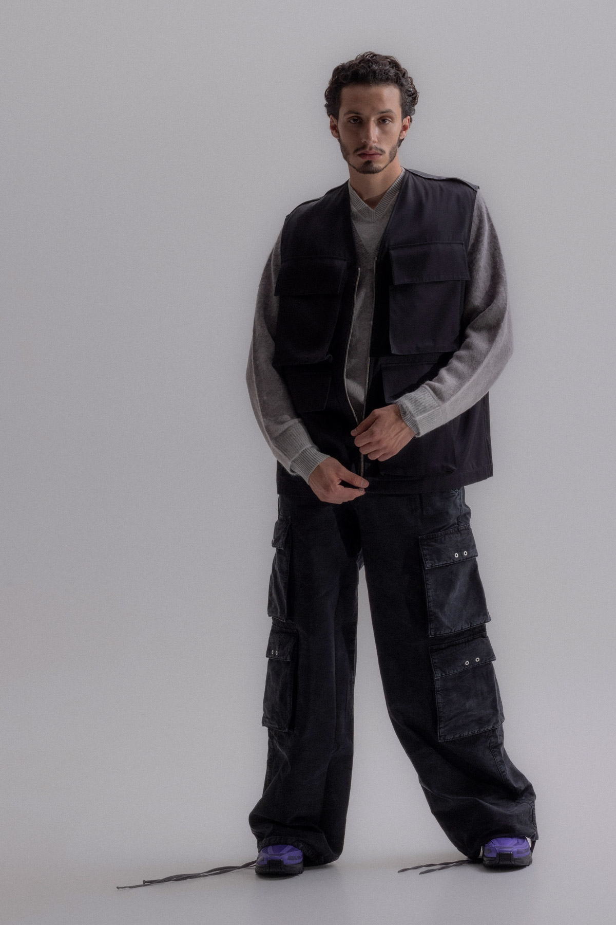 'Triaton Cargo' cotton pants, zip and button closure, pockets, adjustable drawstring at the hem.