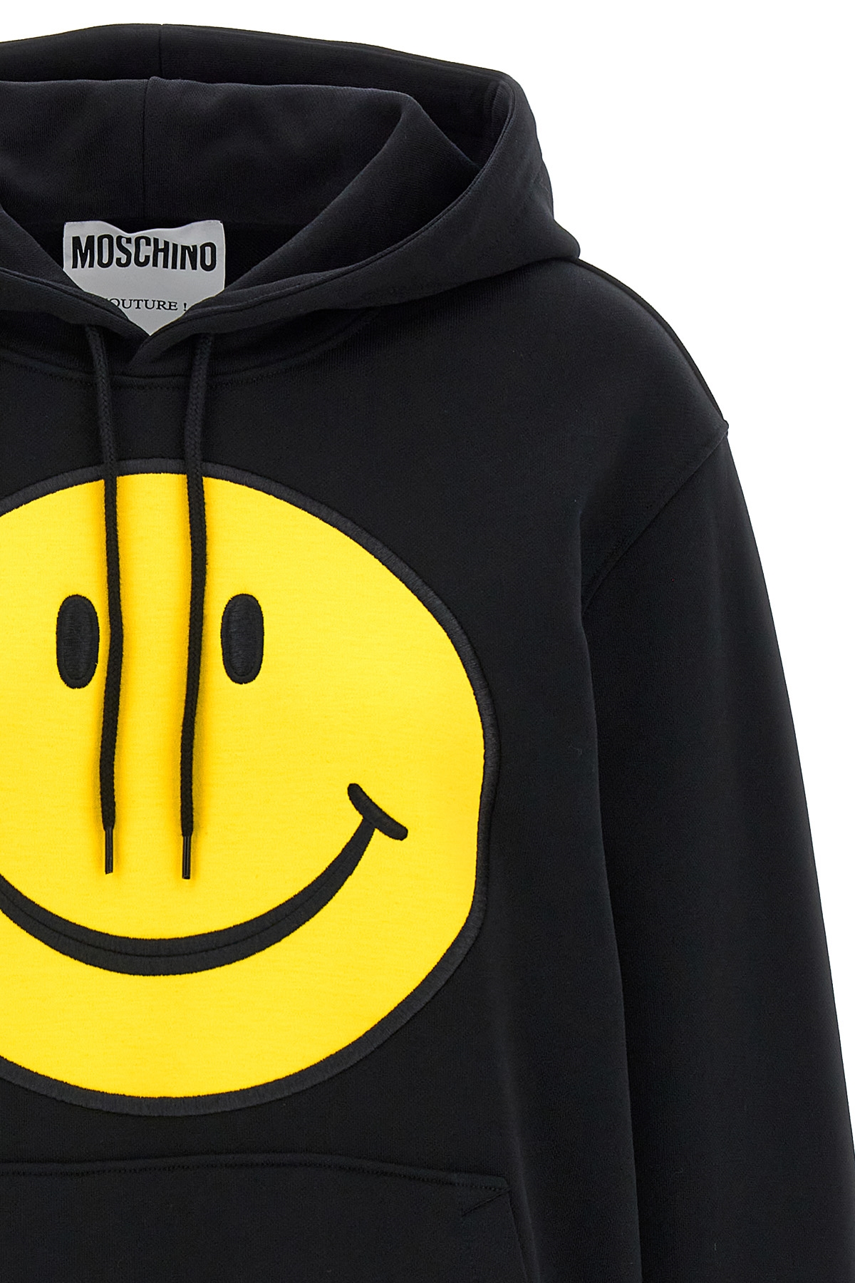 'Smiley' cotton hoodie with front embroidery, kangaroo pocket, long cuffed sleeves.