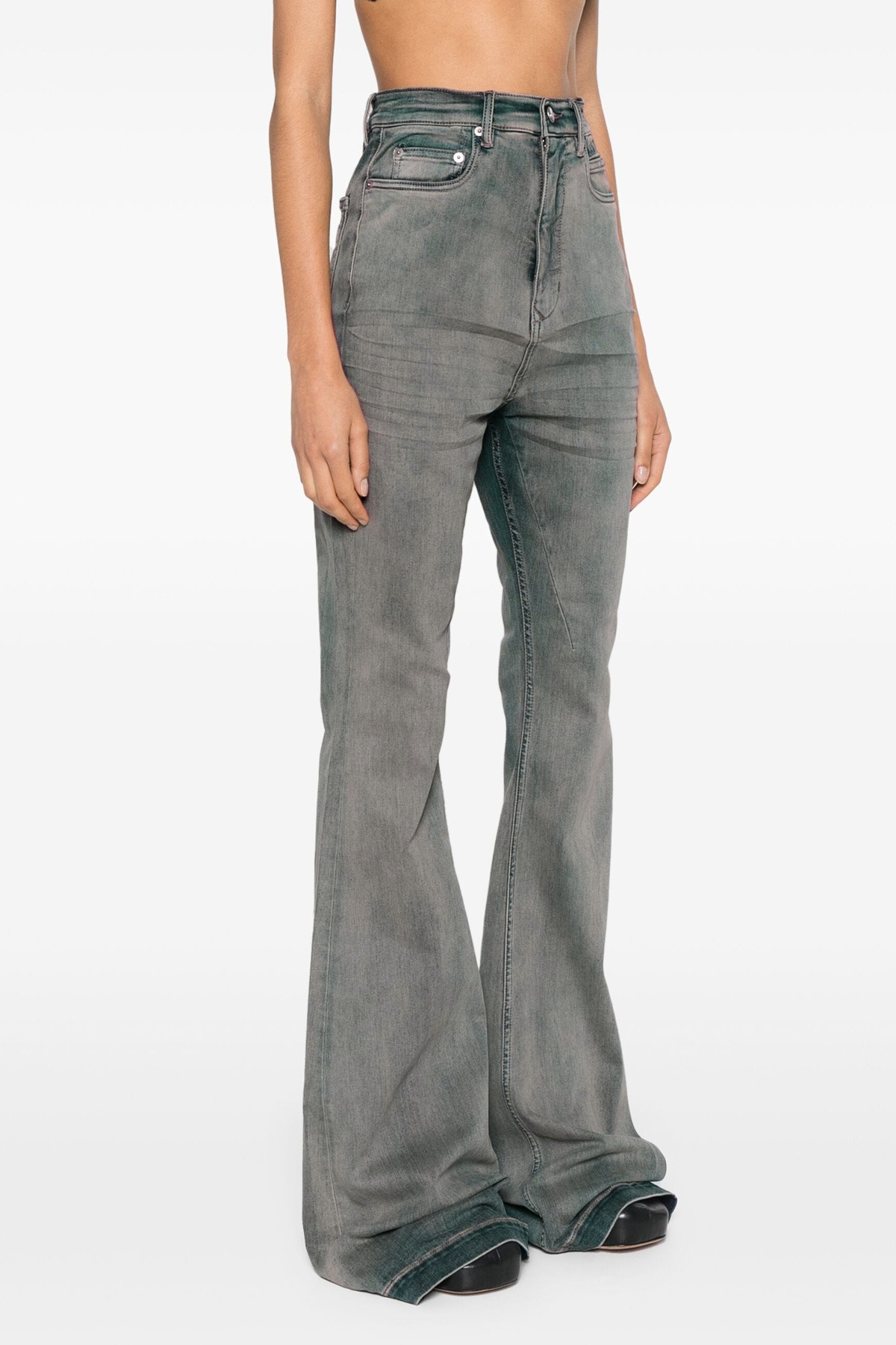 'Bolan Bootcut' stretch cotton denim jeans with zip and button closure, five pockets, flared leg.