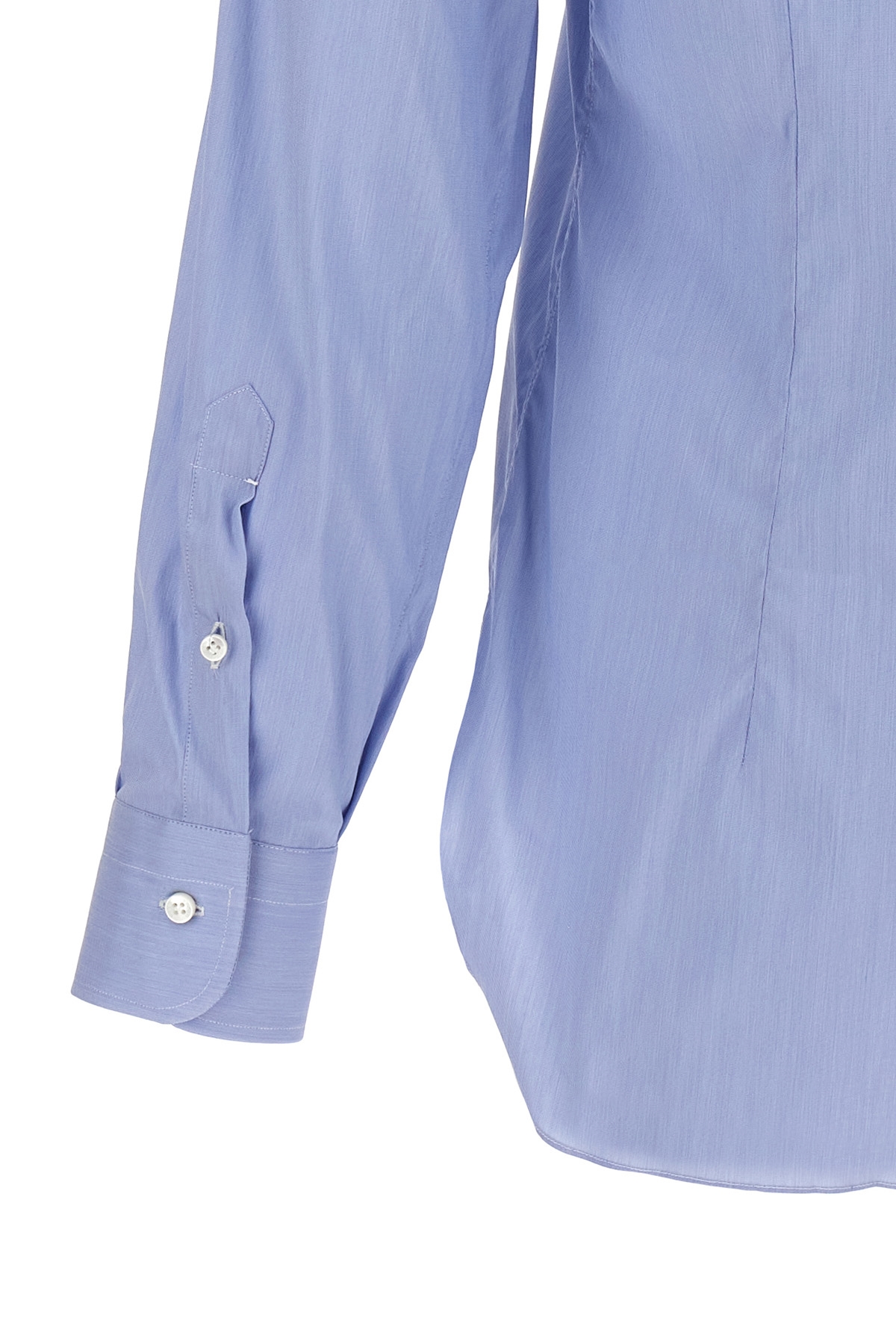 Stretch cotton blend poplin shirt with button closure, long cuffed sleeves.