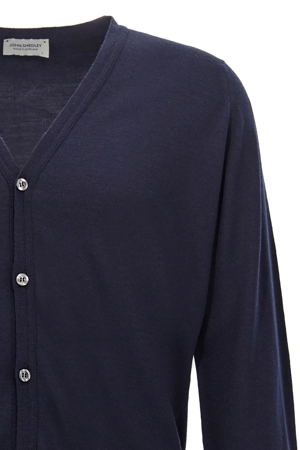 'Petworth' wool cardigan with button closure, long cuffed sleeves.