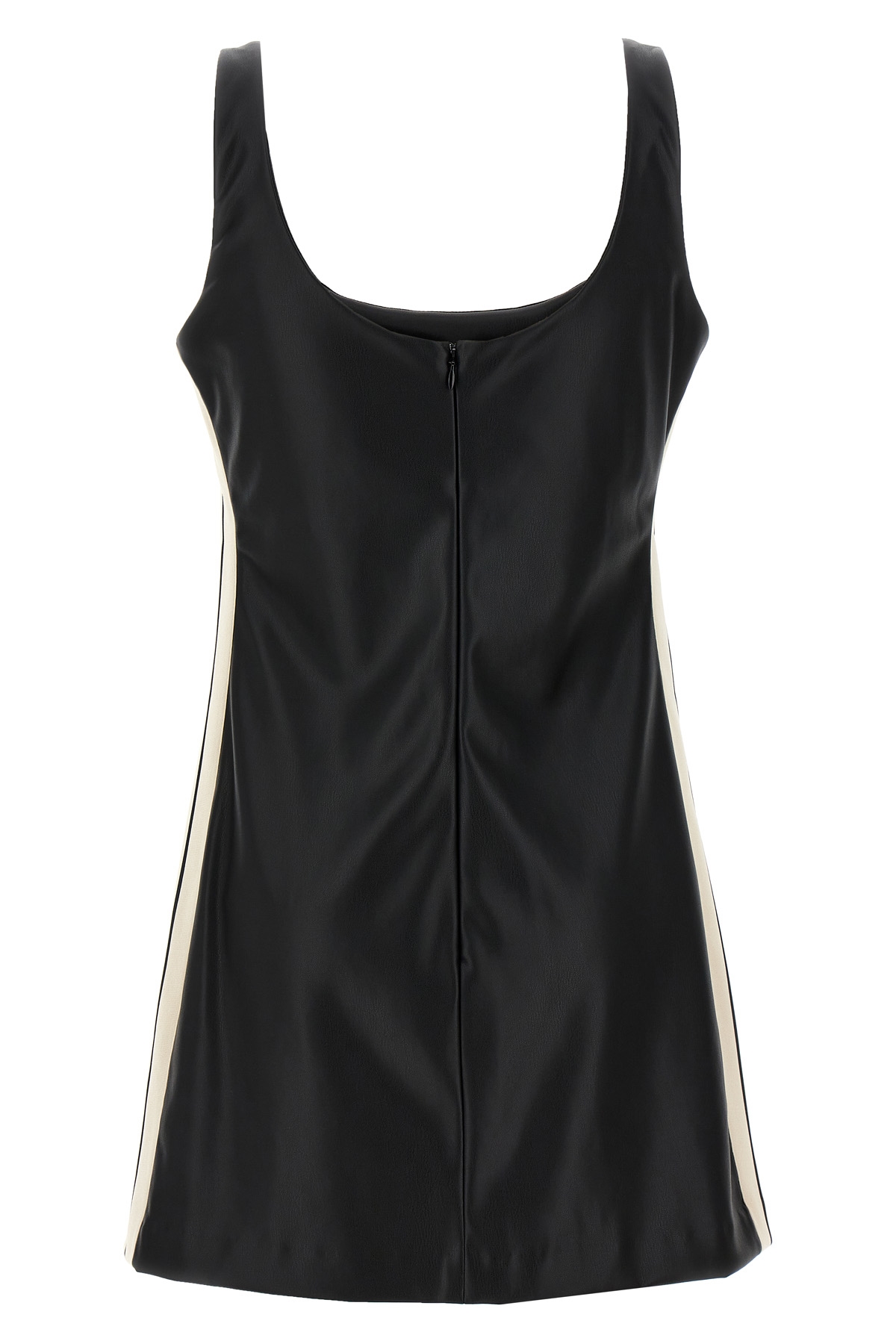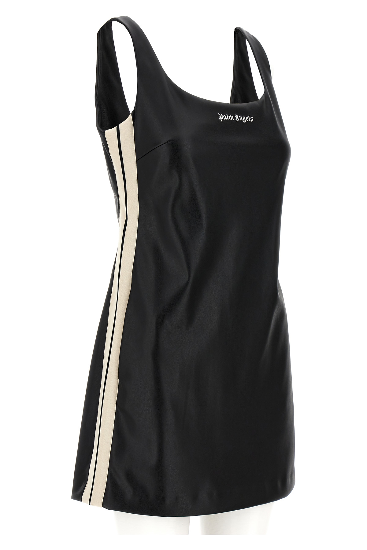 'Leather Effect Track' dress in leather-effect fabric with contrasting side bands, front logo embroidery, back zip closure, round neckline.