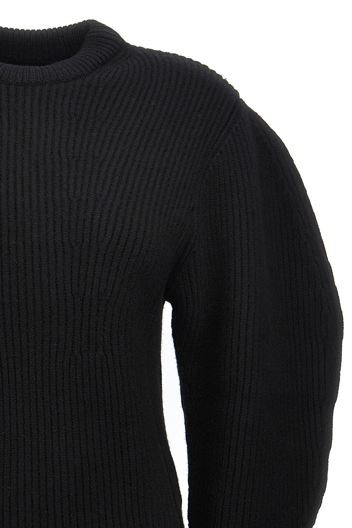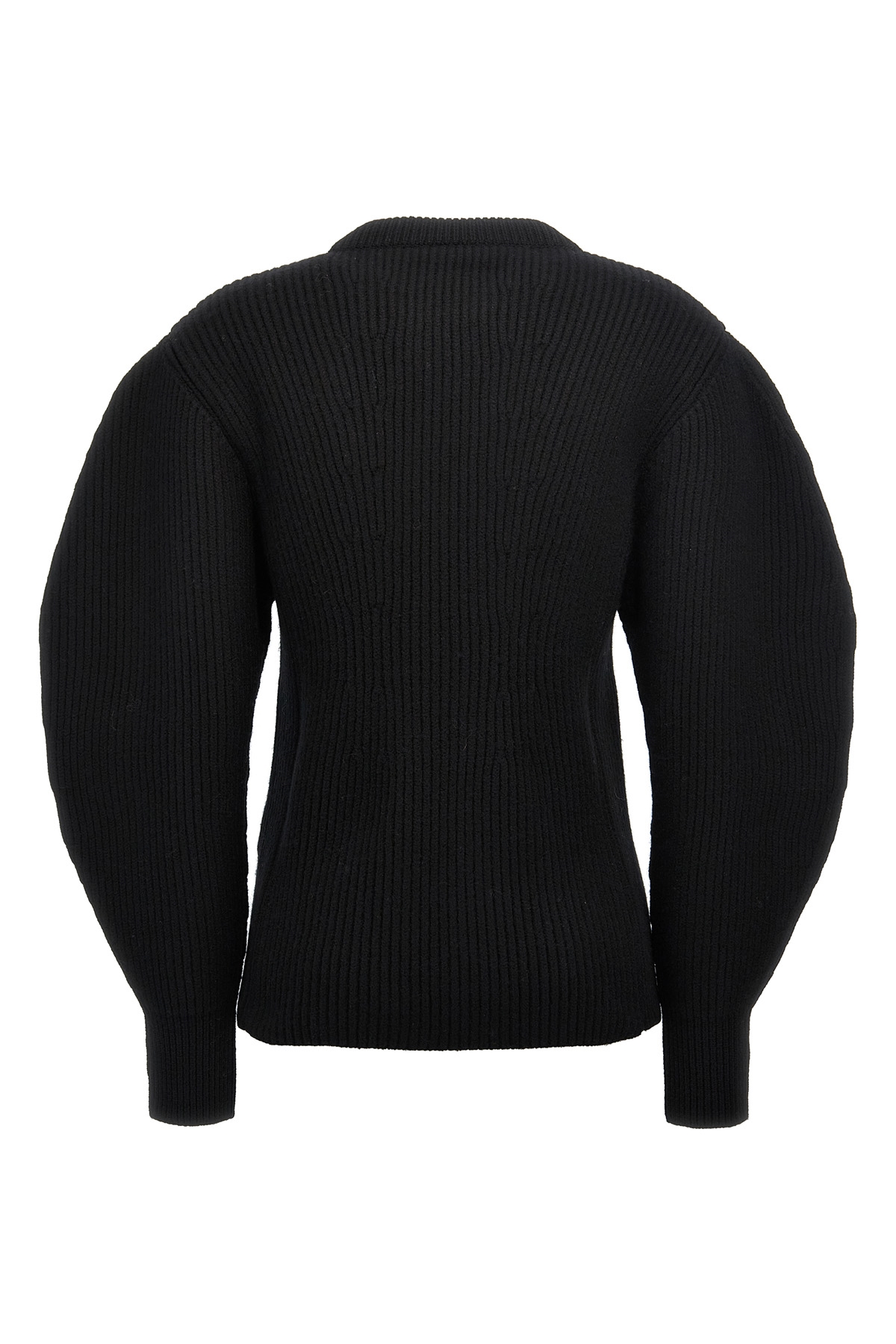 Ribbed wool sweater with crew neck and long cuffed sleeves.